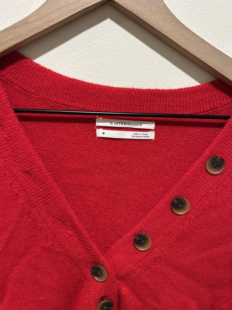 by Anthropologie Serena Red Button V-Neck Long Sweater - Women’s Size Medium - long sleeved - pre-owned, good condition.
