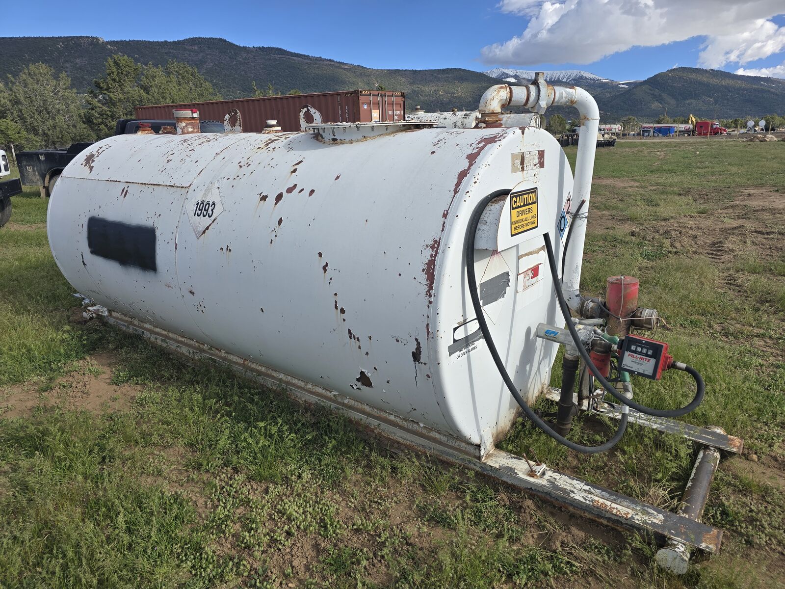 2,000 gal tsnk on skids. Laydown single wall.