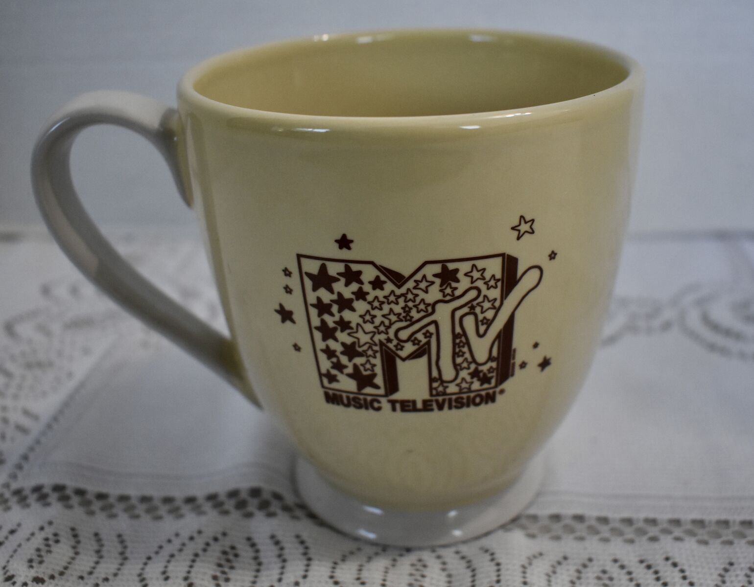 IT MEASURES…JUST A LITTLE TALLER THAN 4 1/2 INCHES TALL AND APPROX. 6 INHCES WIDE MEASURED FROM THE SIDE TO THE OTHER SIDE WHERE THE HANDLE IS INCLUDING THE HANDLE. THE OPENING IS APPROX. 3 3/4 INCHES ACROSS WIDE.