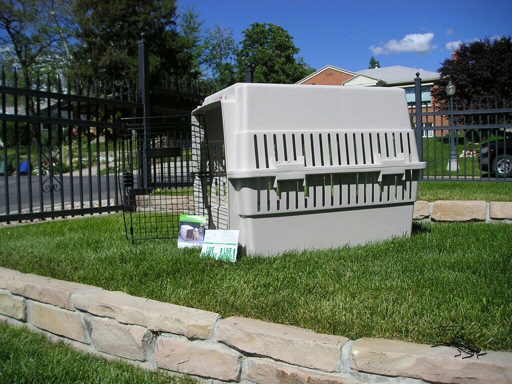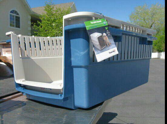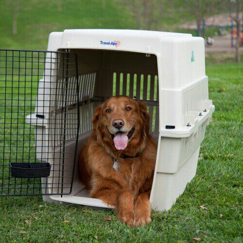 Large Dog kennel measures 36x26x28h. Made in USA and heavy duty. Rated for airline travel that comes with both USDA and IATA airline certificates. Comes with airline stickers and bowls. I only have 4.
