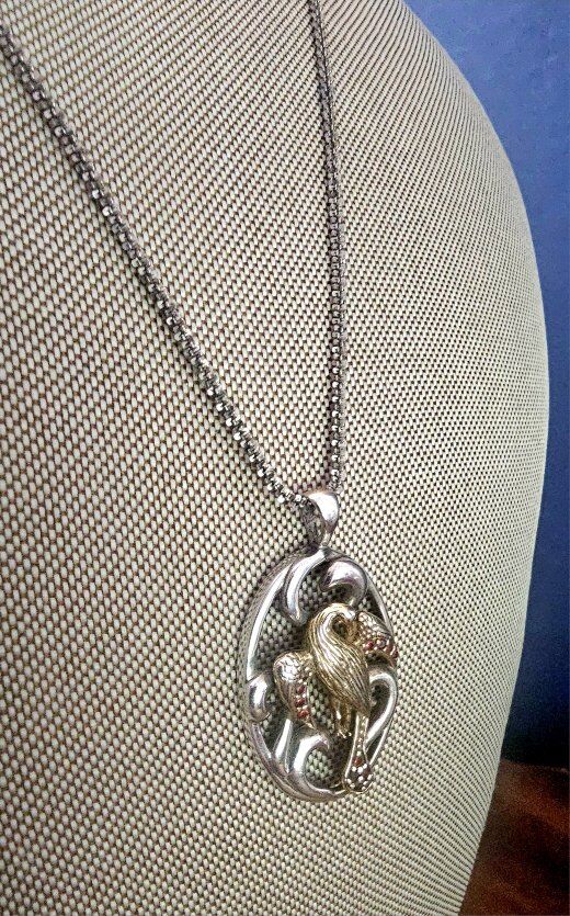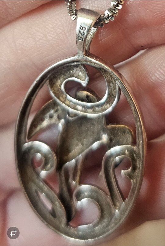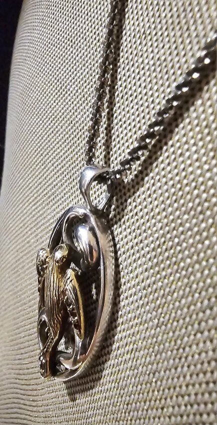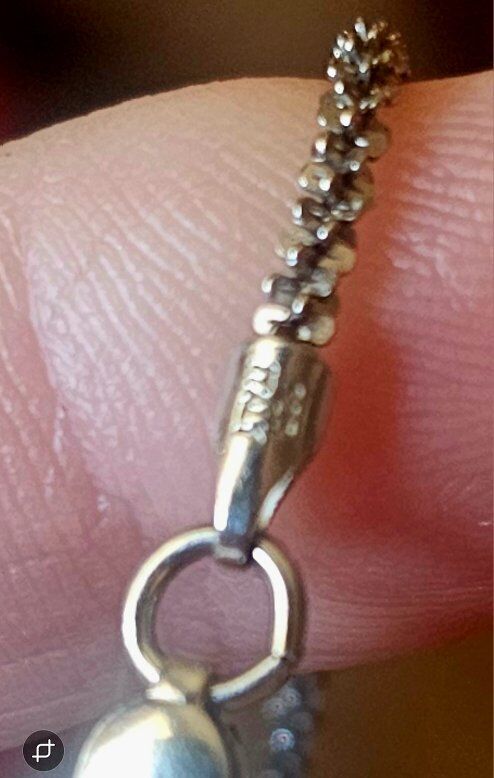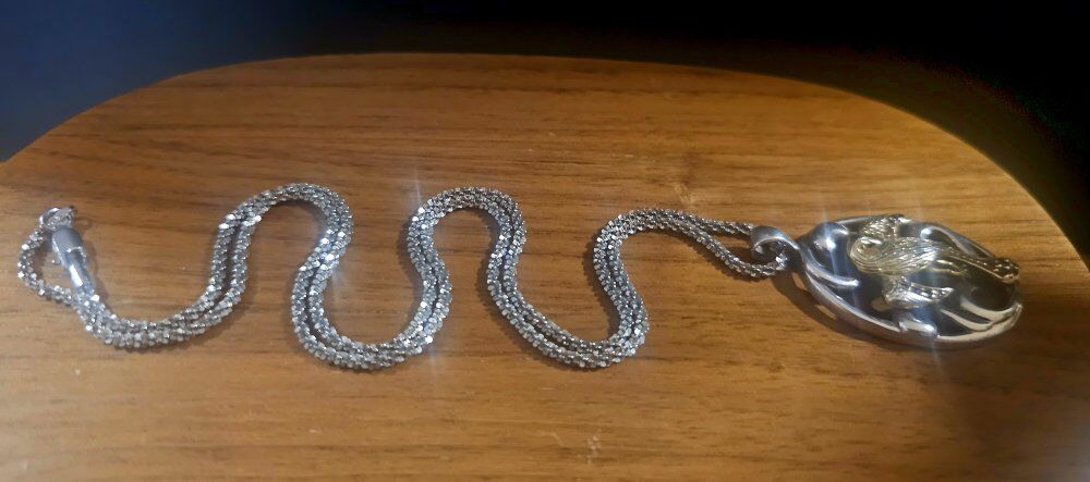 Comes with a STERLING SILVER 20" fancy, SHINY chain with an easy on/off Lobster-Claw closure.