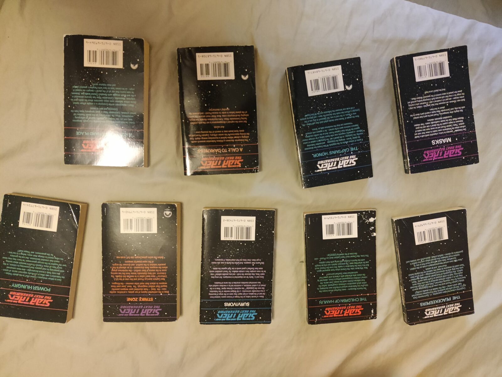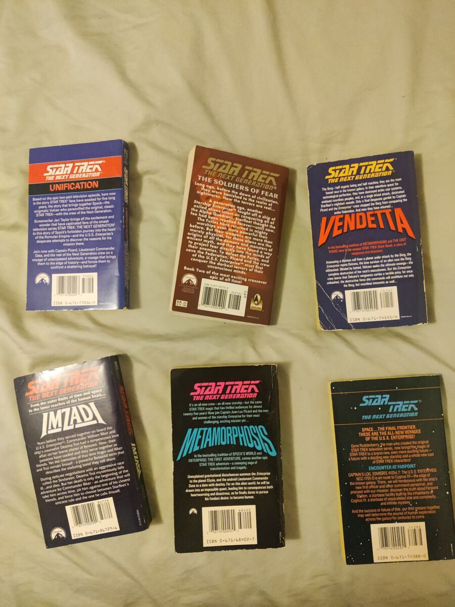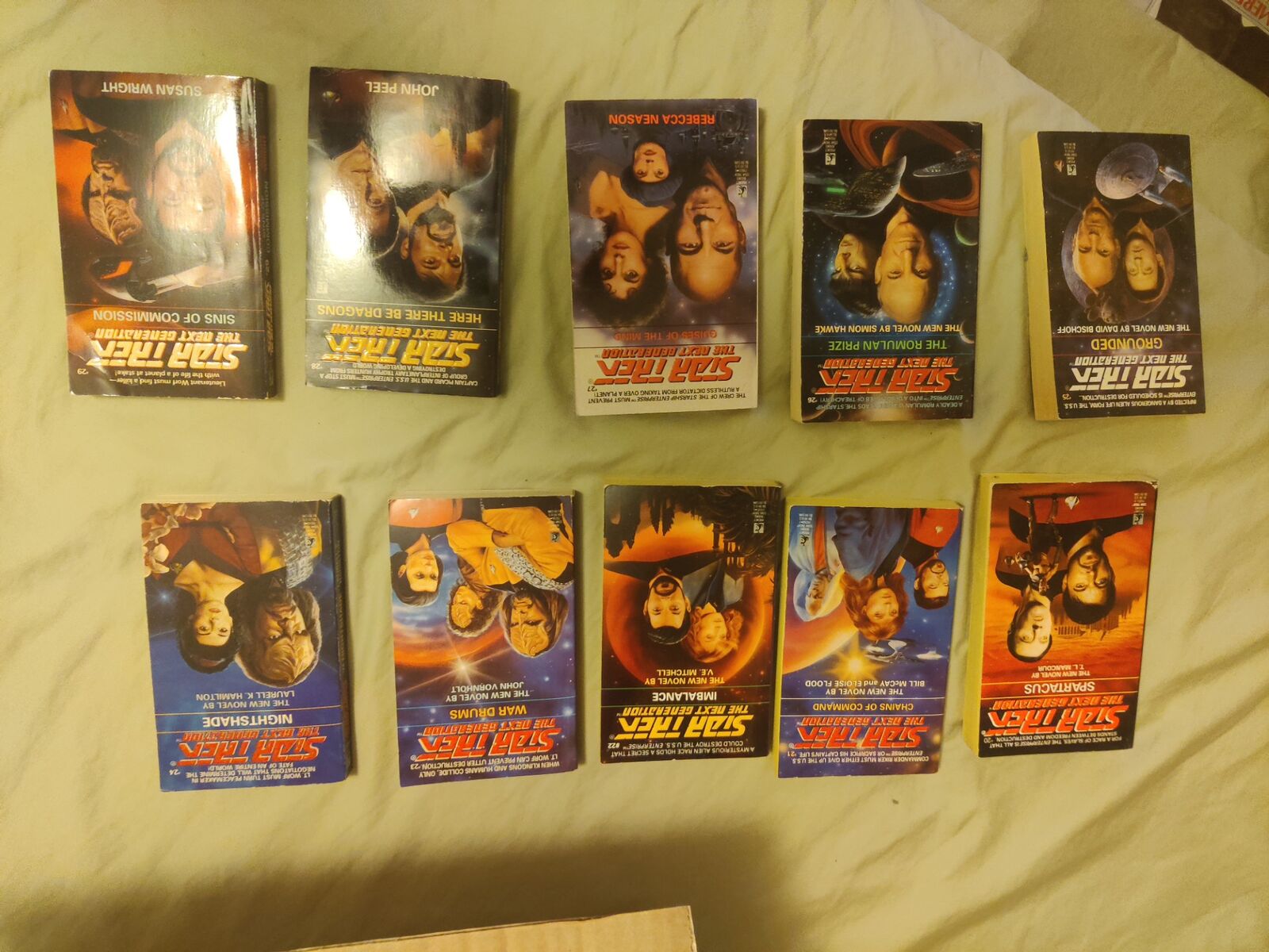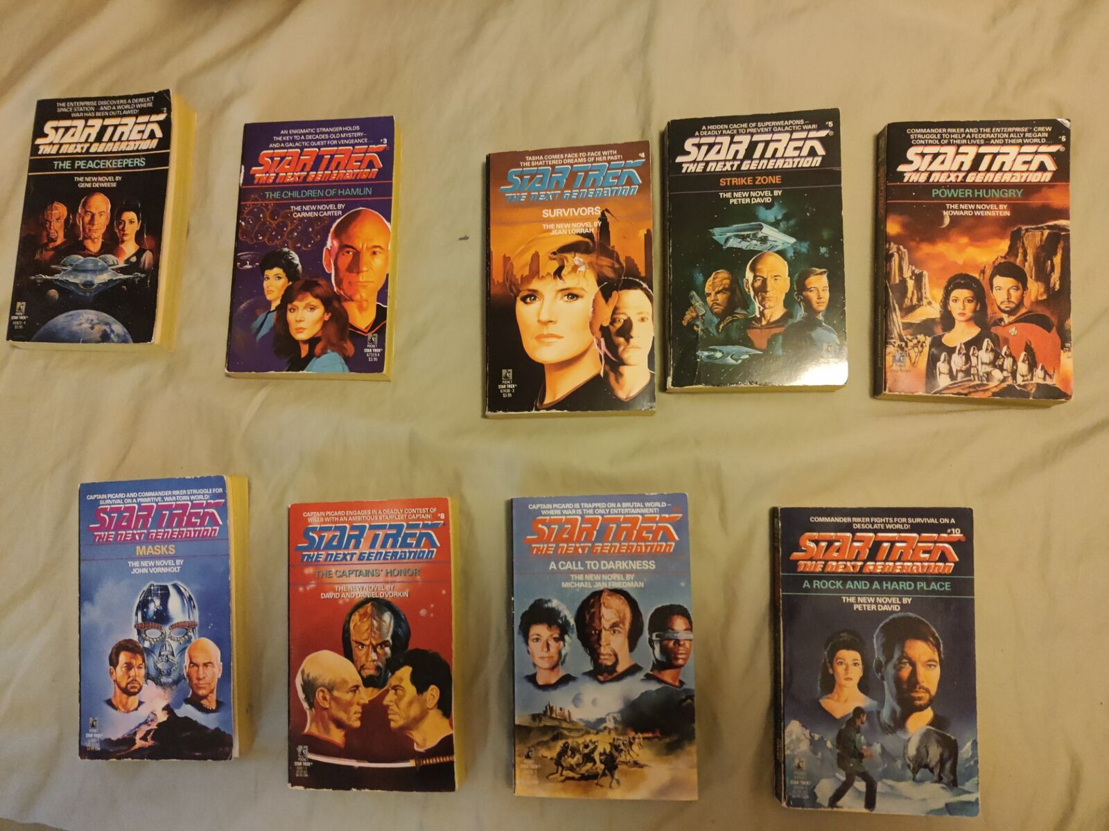 VenmoLOT OF 47 OF STAR TREK THE NEXT GENERATION PAPERBACKS. BOOKS 1-40 ARE ALL THERE IN ORDER FRON THE BEGINNING. ( I REALIZE BOOK 1 IS IN A DIFFERENT PICTURE, I MESSED UP TAKING THE PICTURES BUT IT IS THERE AND IN ONE OF THE PICTURES. ) ALSO BOOKS #'S 42,43,45,46,47,48,62 . PLUS THE ENCYCLOPEDIA BIG REFERENCE GUIDE EVERYTHING YOU SEE IN THE PICTURE. ALSO THE AUDIO BOOKS ON TAPE OF ONE OF THE STORIES ( PICTURE REALLY BLURRY ) ALL OF THEM ARE PAPERBACK BOOKS AND ALL OF THEM ARE IN EXCELLENT CONDITION. SPINES 100% INTACT, NO PAGES MISSING OR WRITTEN ON IN ANY OF THE BOOKS.