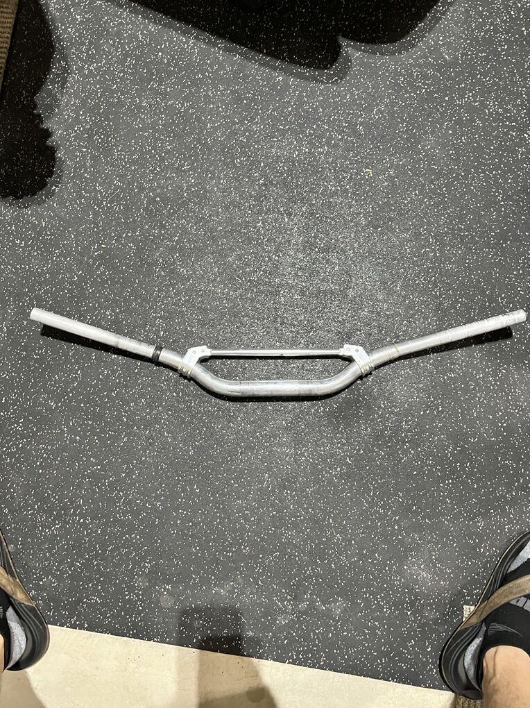 These are branded as applied racing but they are made by renthal as seen in the photos. Straight, not sure in the bend.