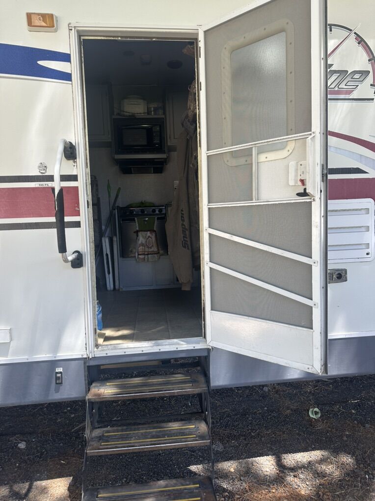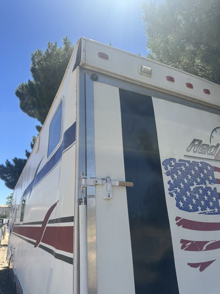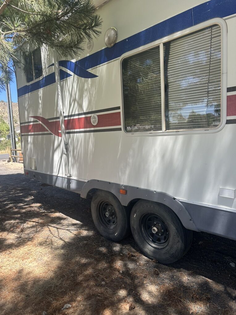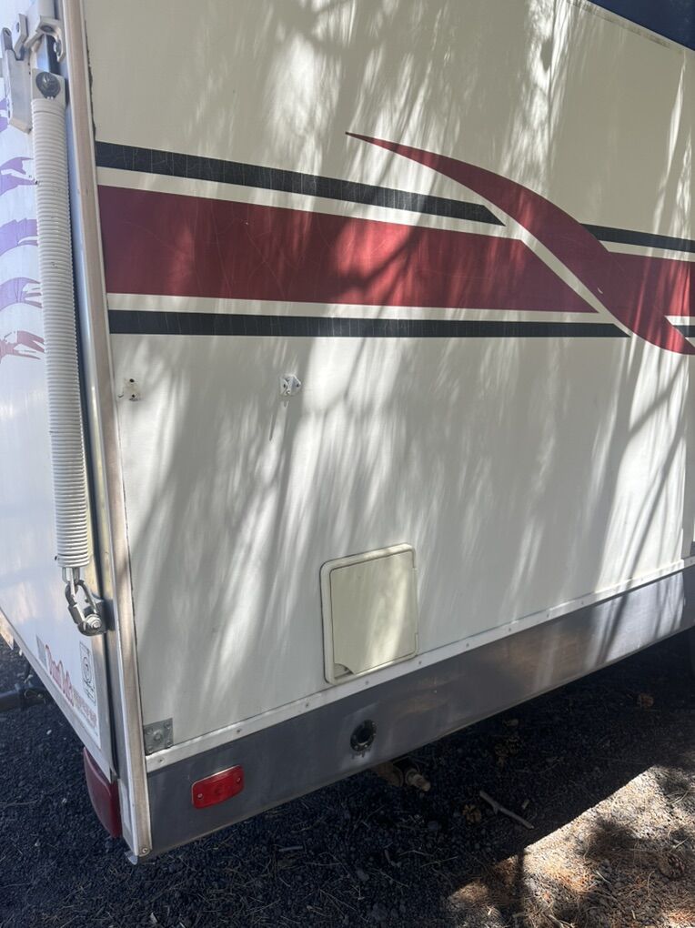 This has been an amazing trailer, but it has some issues that needs to be fixed. If someone has the time to fix it, it would be the best trailer. It needs cosmetic work done. Floor is ripped, damaged to outside wall, back door needs to be replaced. Backend needs repair, and needs a new awning. Look at pictures. Everything else on it works great. Fridge/freezer Generator Stove Microwave Shower