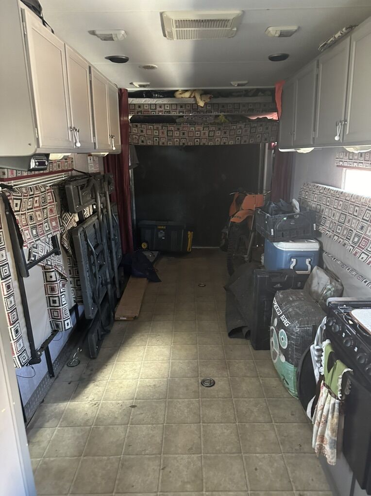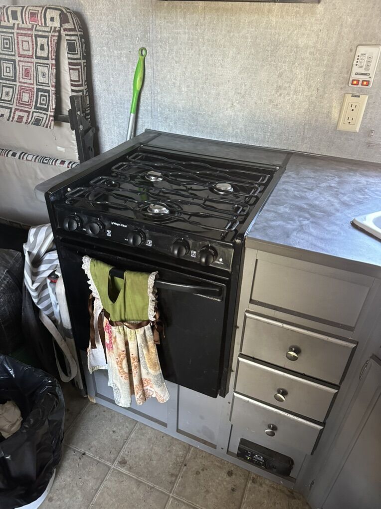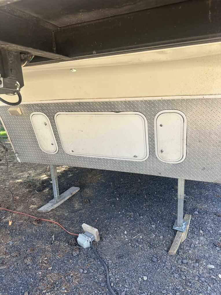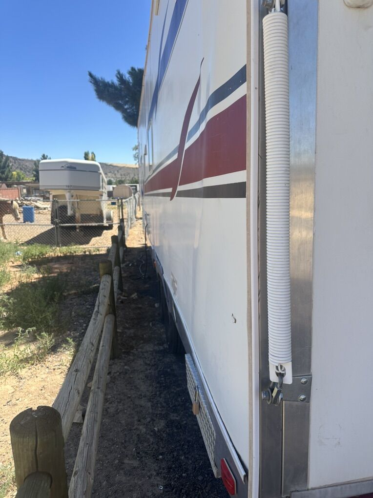 This has been an amazing trailer, but it has some issues that needs to be fixed. If someone has the time to fix it, it would be the best trailer. It needs cosmetic work done. Floor is ripped, damaged to outside wall, back door needs to be replaced. Backend needs repair, and needs a new awning. Look at pictures. Everything else on it works great. Fridge/freezer Generator Stove Microwave Shower