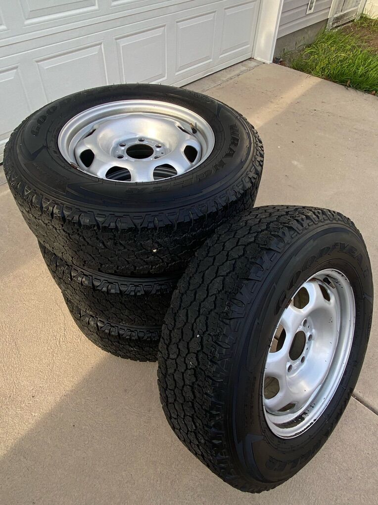 Goodyear Wrangler 245/75R17 Kevlar tires with lots of life left on them. I can throw in a full size spare if you’d like.