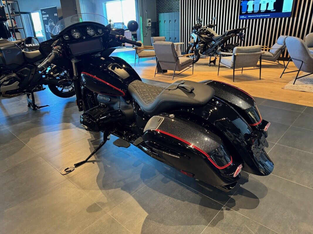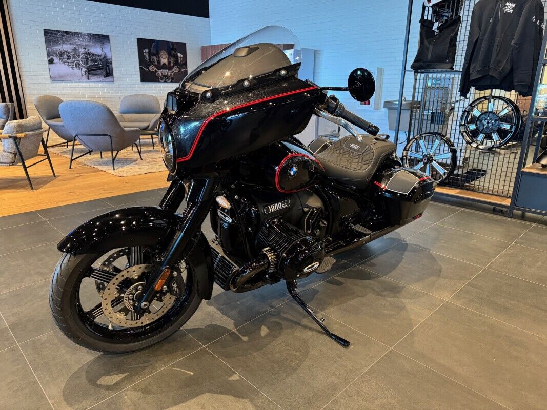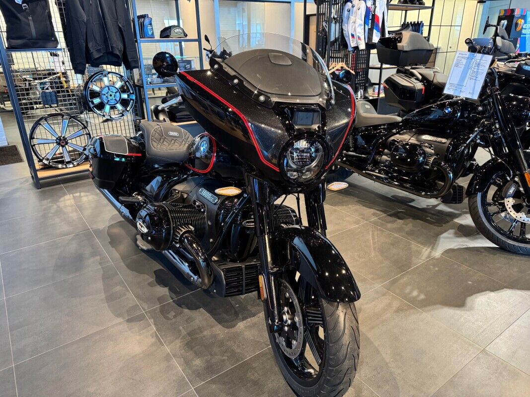 DEMO BIKE! Save thousands! The BMW R 18 B is the modern interpretation of a typical bagger. The authentic style is defined by the permanently installed cases. Extroverted riders can masterfully set the scene with extravagant paint. The iconic big boxer delivers and puts you right at the heart of a unique lifestyle. The comfortable seat with a modern design is perfect for long cruising. The R 18 B has a strong lead when it comes to matters of comfort and technology. There’s no looking back. Welcome to the here and now. Color: Black. Presence: Bold. No other surface is as closely linked to the custom cruiser scene as chrome is. The new Premium Style “Blacked Out” offers you an attractive, dark chrome finish for your bike, giving it a more dynamic look. The black highlights will meet even the highest standards for individuality and modernity. The style includes many different components in dark chrome – from the exhaust system, to pushrod tubes, right up to the trim panel components with this classy finish. Iconic look, modern highlights The typical bagger: the style-defining, permanently installed case and the large front with handlebar trim. The typical BMW: countless features for increased comfort and control, as well as high-end, state-of-the-art technology. The highlights of the R 18 B are an expression of the modern way of cruising. In control The R 18 B’s three riding modes offer you riding pleasure and control as standard, supplemented by Automatic Stability Control (ASC) and dynamic engine brake control (MSR). available Reverse and available Hill Start Control make hill starts easier and add even more convenience. Plus the traditional headlight shape features cutting-edge LED lighting technology. The optional adaptive headlight helps illuminate the road when driving in bends. 1,802 cc – but no space for hot air Hardly any other bike offers this much displacement. You can see it, hear it and feel it. You can utilize over 110 lb-ft of torque at any time between 2,000 to 4,000 rpm. For powerful indulgence and a consistently high torque developed in a typical boxer way. At 4,750 rpm, the powerful short engine generates 91 hp. The exposed, nickel-plated Cardan shaft is a visual highlight of this engine.