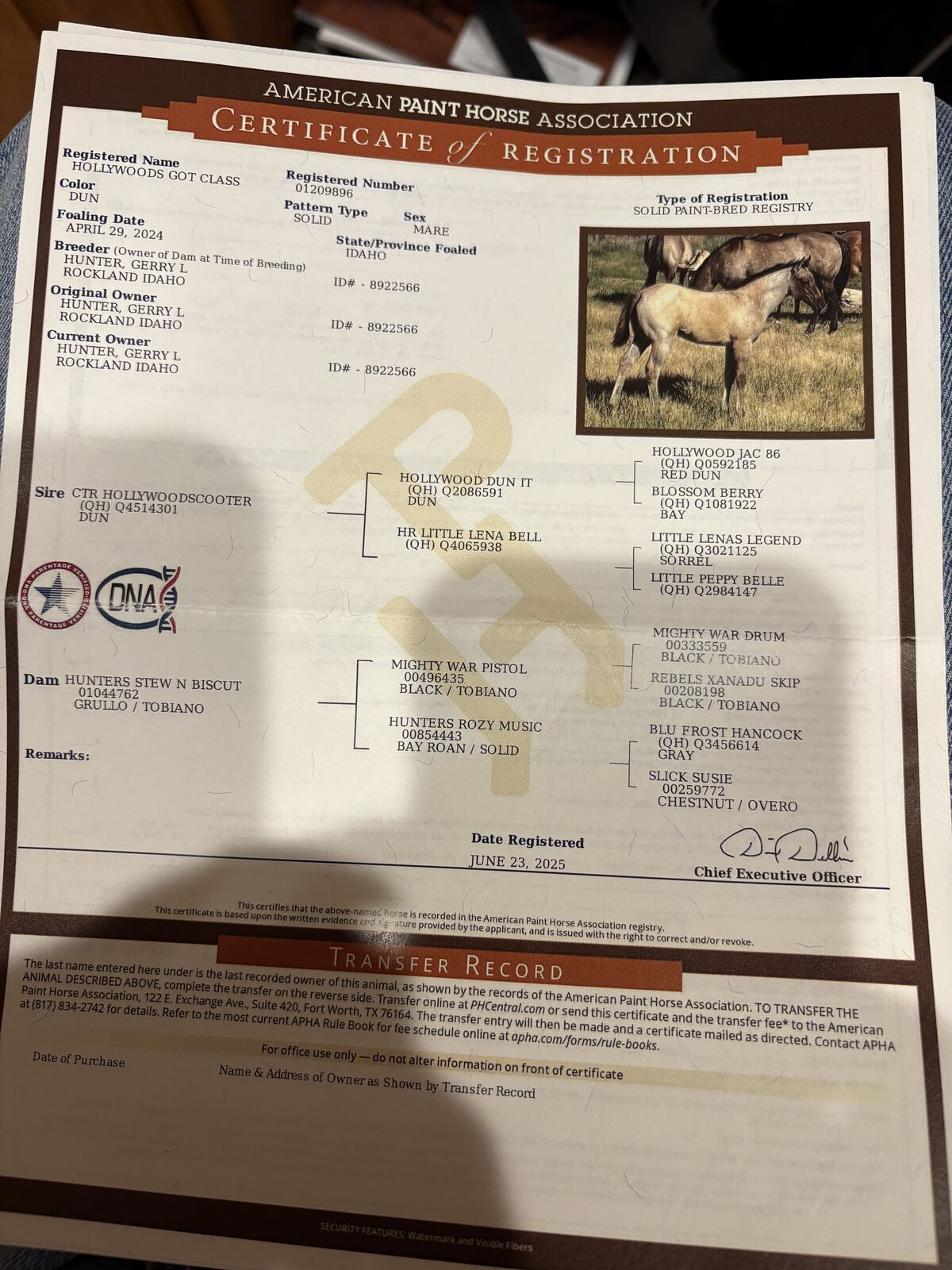 Beautiful APHA Dun Roan filly. This beauty is a Granddaughtet of Hollywood Dun It. She is super sweet and will be an athlete. See us on Facebook at Hunter Paint and Quarter Horses. Thanks