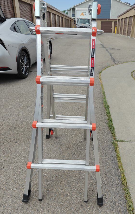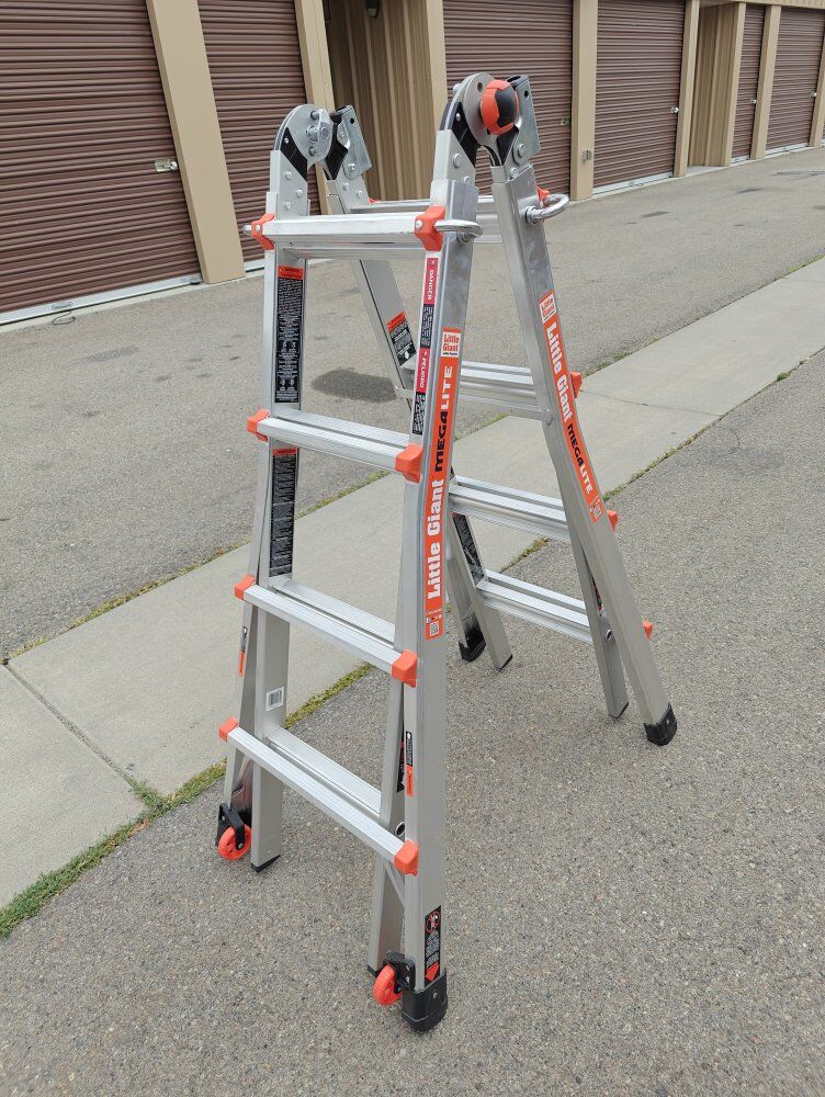 VenmoThis ladder can fold on itself and can lay flat. It locks into place easily and is in “like new” condition.