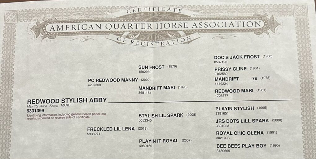 Abby is a beautiful sorrel yearling filly. She stands just shy of 14H currently. She’s built right, she stands out, shes got good bone, a good mind, and is eligible for many lucrative incentives. Shes paid current into the Riata Buckle and would make a fabulous rope horse prospect. Shes also eligible for the pink and Ruby buckle. This mare right here should have all it takes to be a performer and money earner. Asking $16,000 open to reasonable offers.