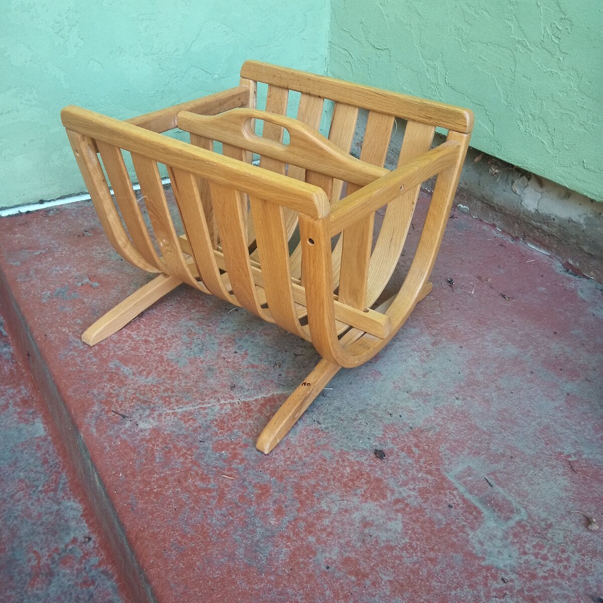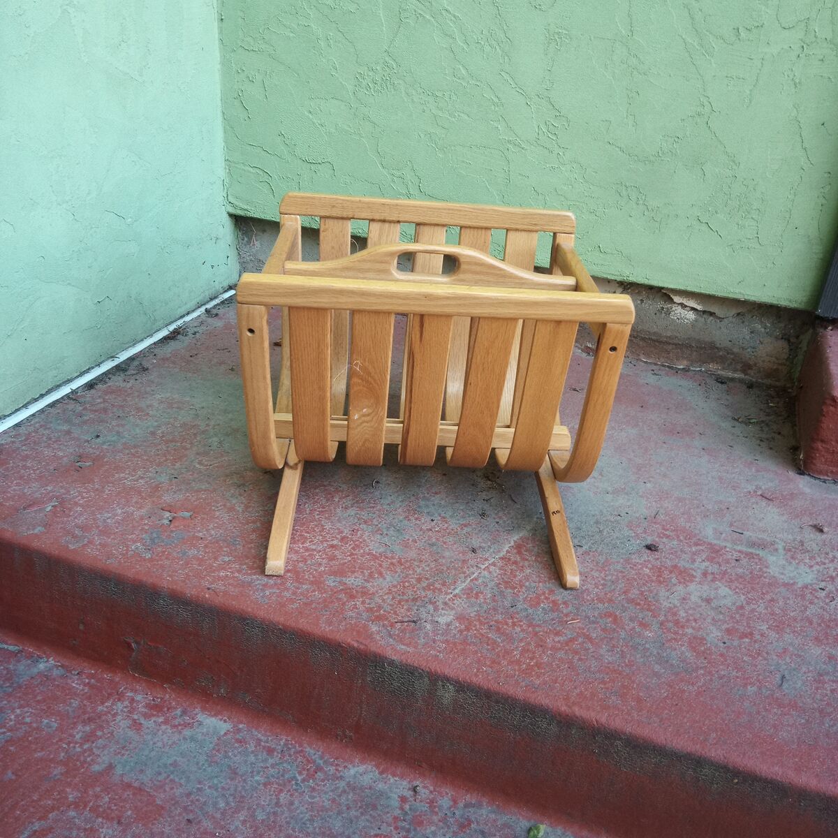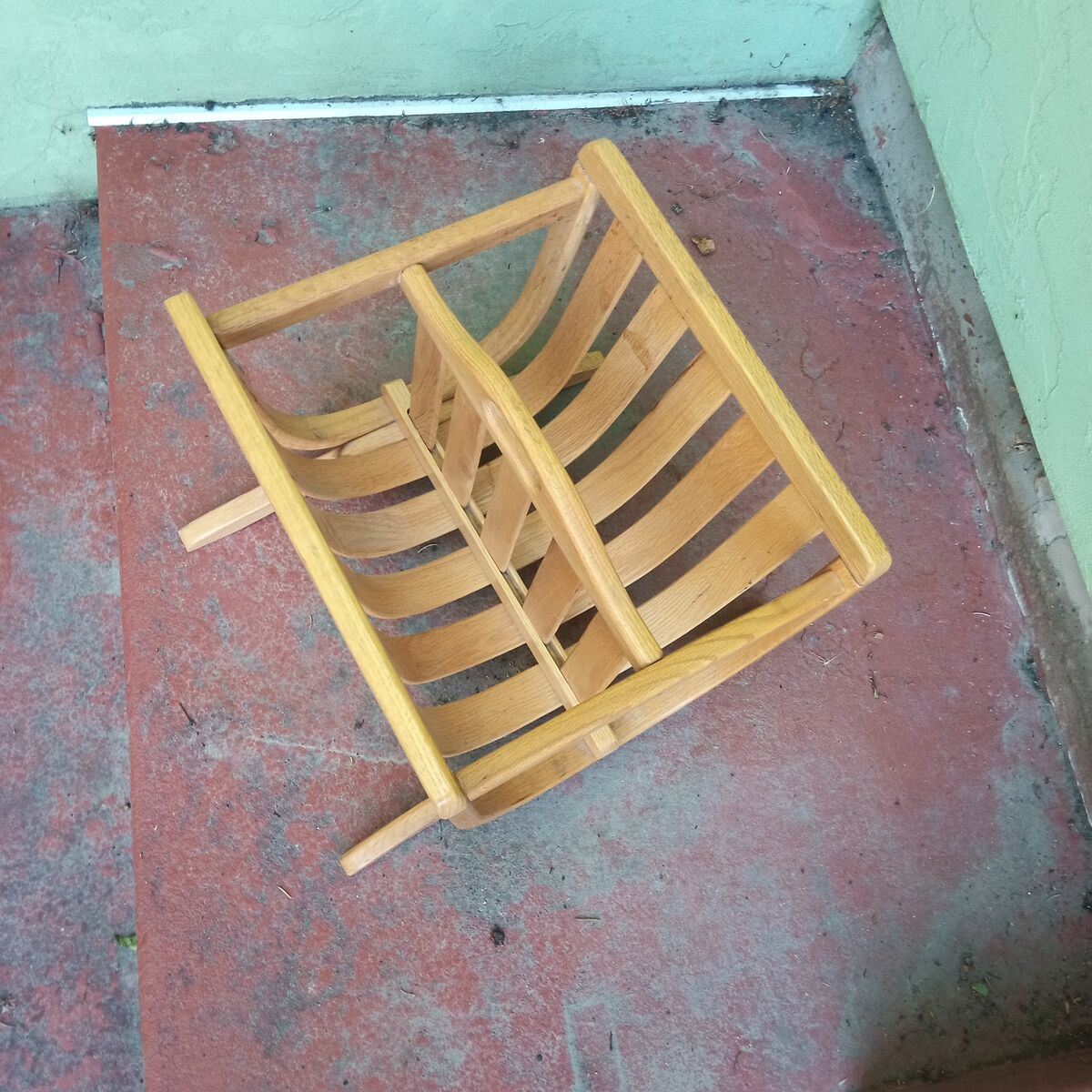 Vintage, mid century magazine rack, I think it's oak but it may be a very light teak