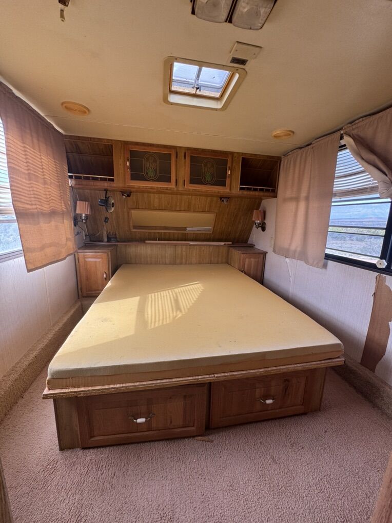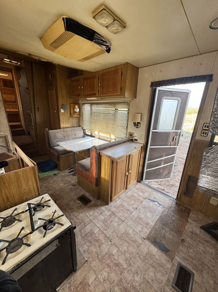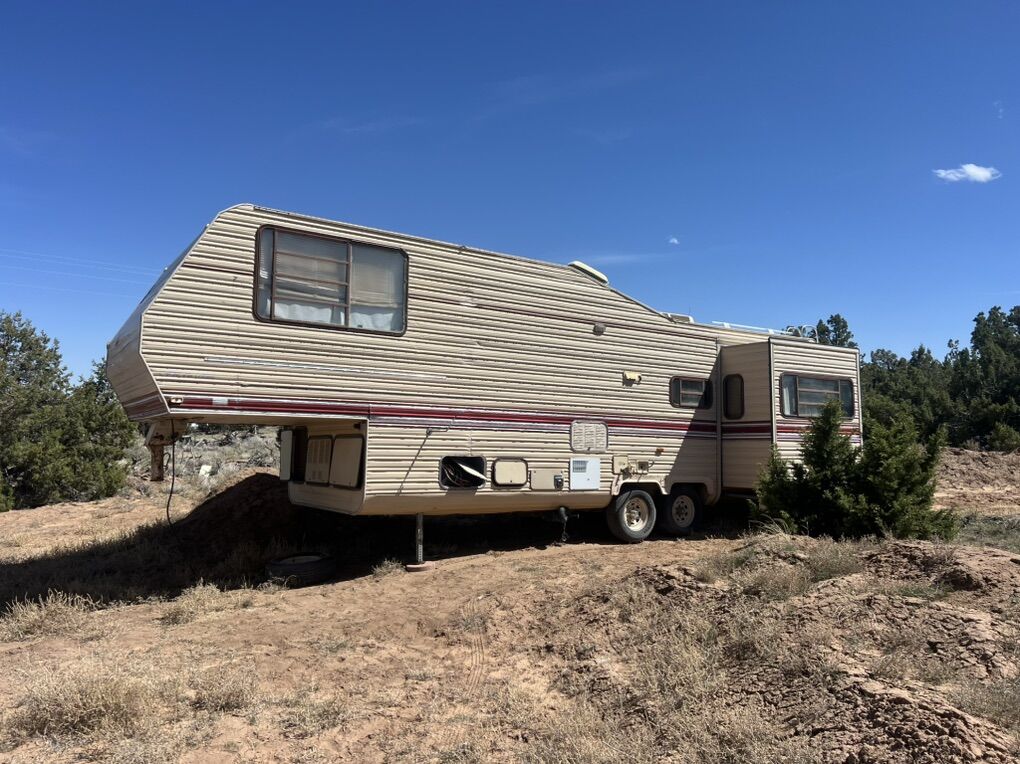 Located in Duchesne Uintah basins (by starvation lake, and one mile from RABBIT GULCH CAMP GROUNDS) you can easily google map it. it’s about 30ft long This came with our property and we DON’T have the title but I can give you a Bill of Sale. Great fixer upper. windows are good, walls are good, roof is good, bathroom is good, fridge worked last year when we used it, stove is removed but available, lights worked last year, kitchen sink is detached but available, bathroom is in good shape, comes with a new toilet still in box so you will have to install yourself, most cabinets are good, bedroom is in good shape, still has a couple of batteries that needs charge, tires may need to be replace if it’s going for a long drive or need air because they’ve been sitting for a years, skylight is broken, doors lock and keys are available, the floors peel off, needs a good cleaning, structure is good but has a few dents. THIS IS AN OLD TRAILER (1986-1989) AND HAS BEEN SITTING FOR YEARS. We haven’t seen water damage. There has also been rodents from underneath and chewed a couple of holes inside. This is all I know, It is currently being used as storage. NO DELIVERY. Price is FIRM . CASH ONLY, NO payment plans NO trades.