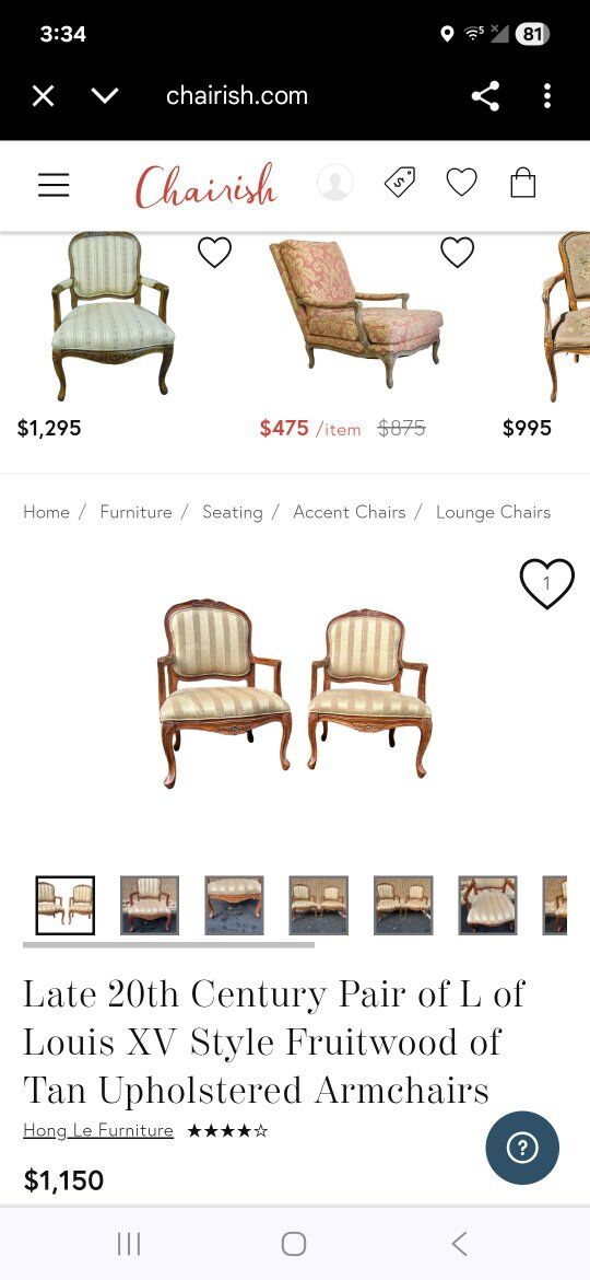 The Late 20th Century L of Louis XV Style Fruitwood of Tan Upholstered Armchair in the middle is $200 obo(Normally $1,150 for a pair).