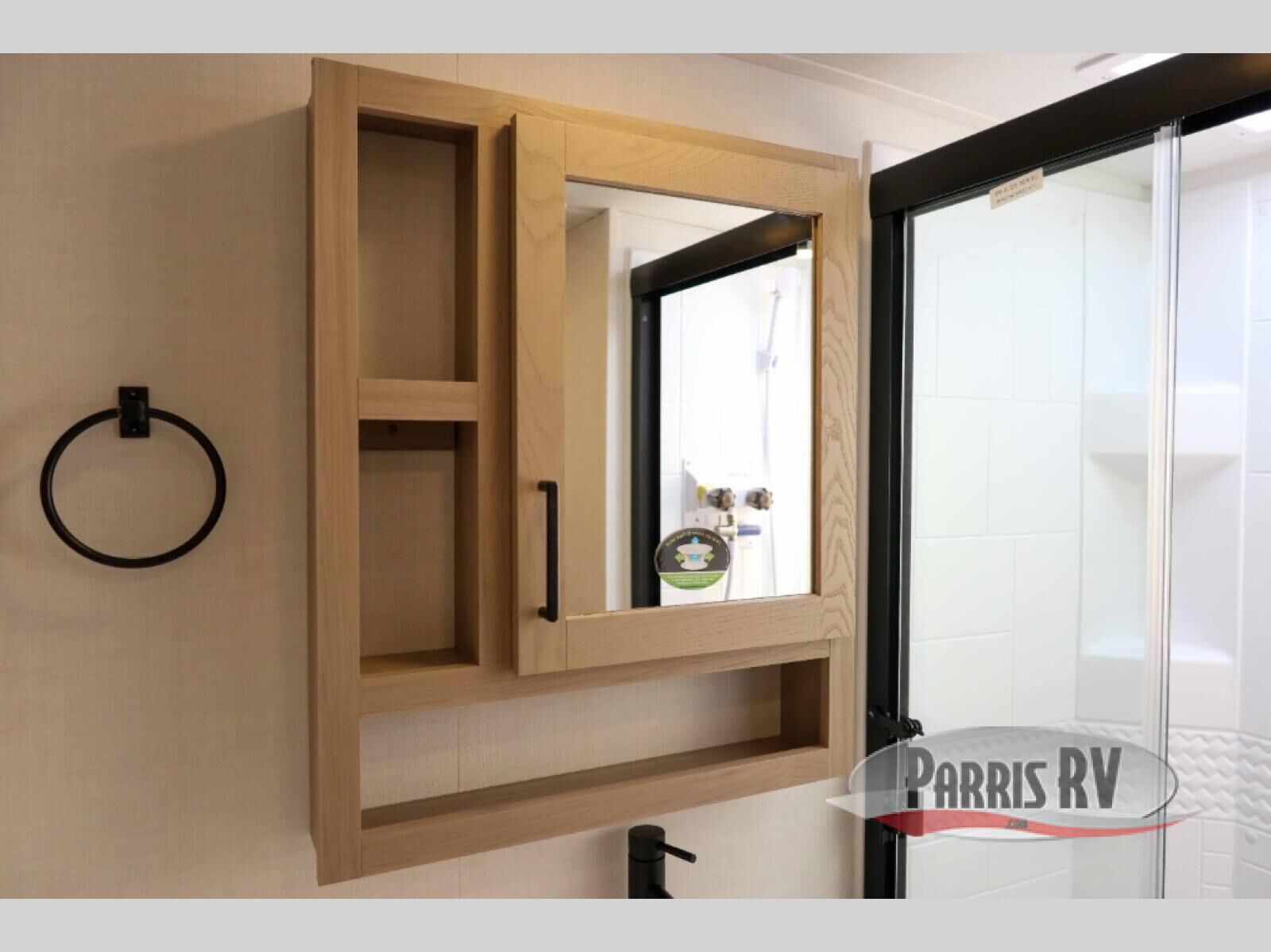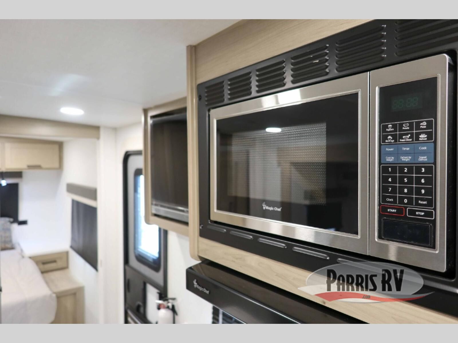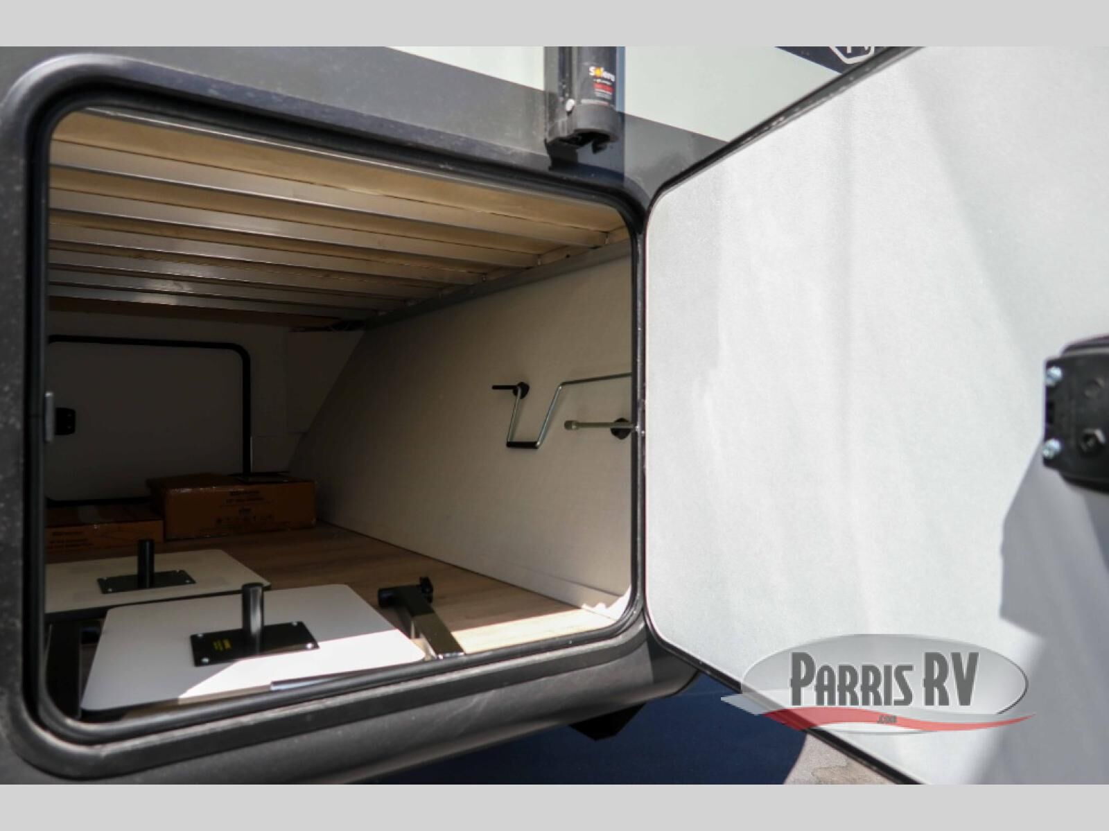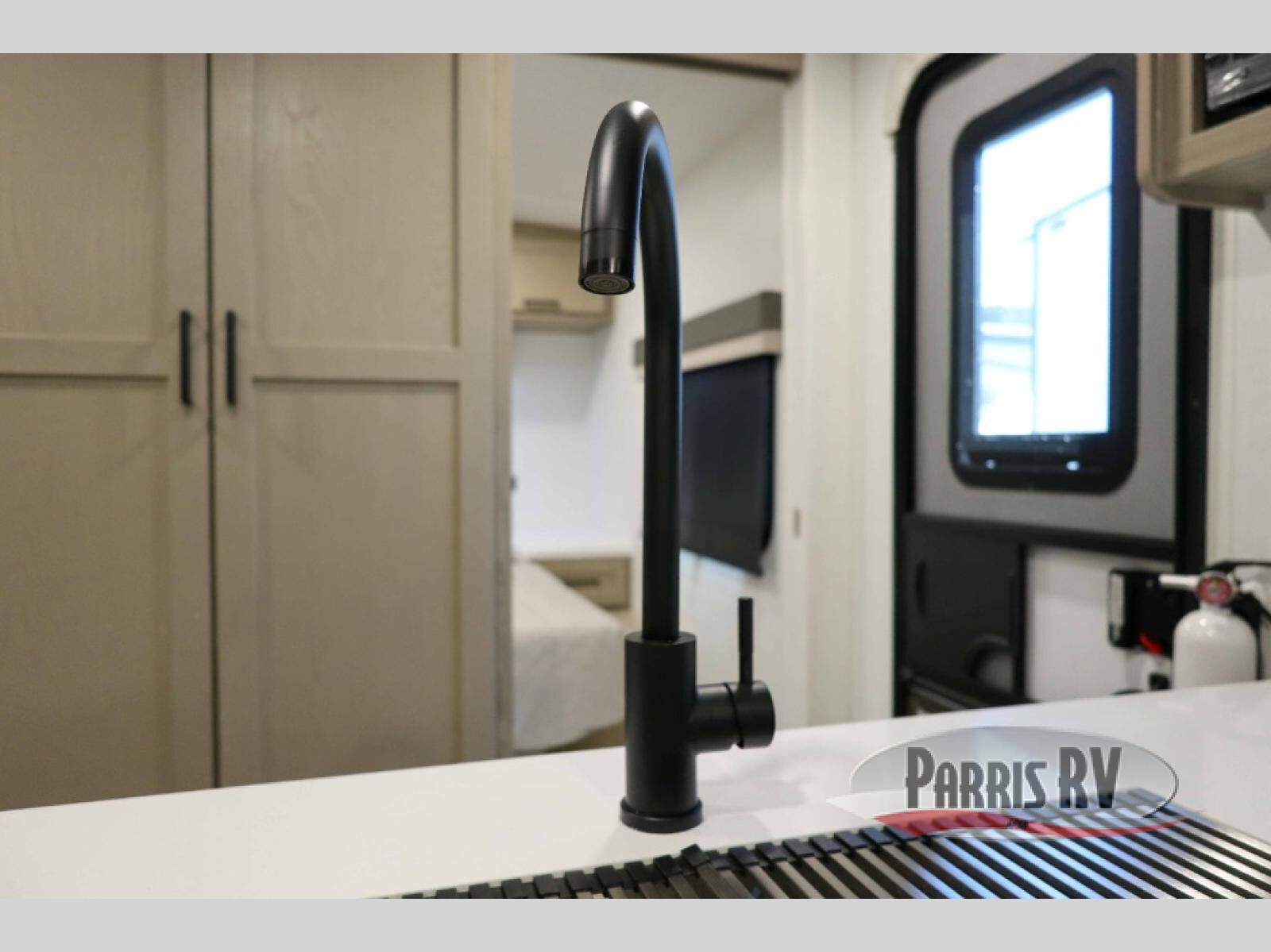 This is the perfect travel trailer for two people looking for comfortable camping trips! You will have your own RV queen bed to sleep on in the front private bedroom, and an optional TV can be added if you enjoy the morning news in bed. Breakfast can be made on the three burner cooktop, or head outdoors to cook on the outside kitchen. The theater seating with a table will provide a place to relax and dine together, and the spacious full rear bath will allow you to clean up before you head out for the day. This model includes plenty of storage space, including two pantries, a wardrobe slide out in the bedroom, plus a drop-frame pass-through storage for larger camp gear!