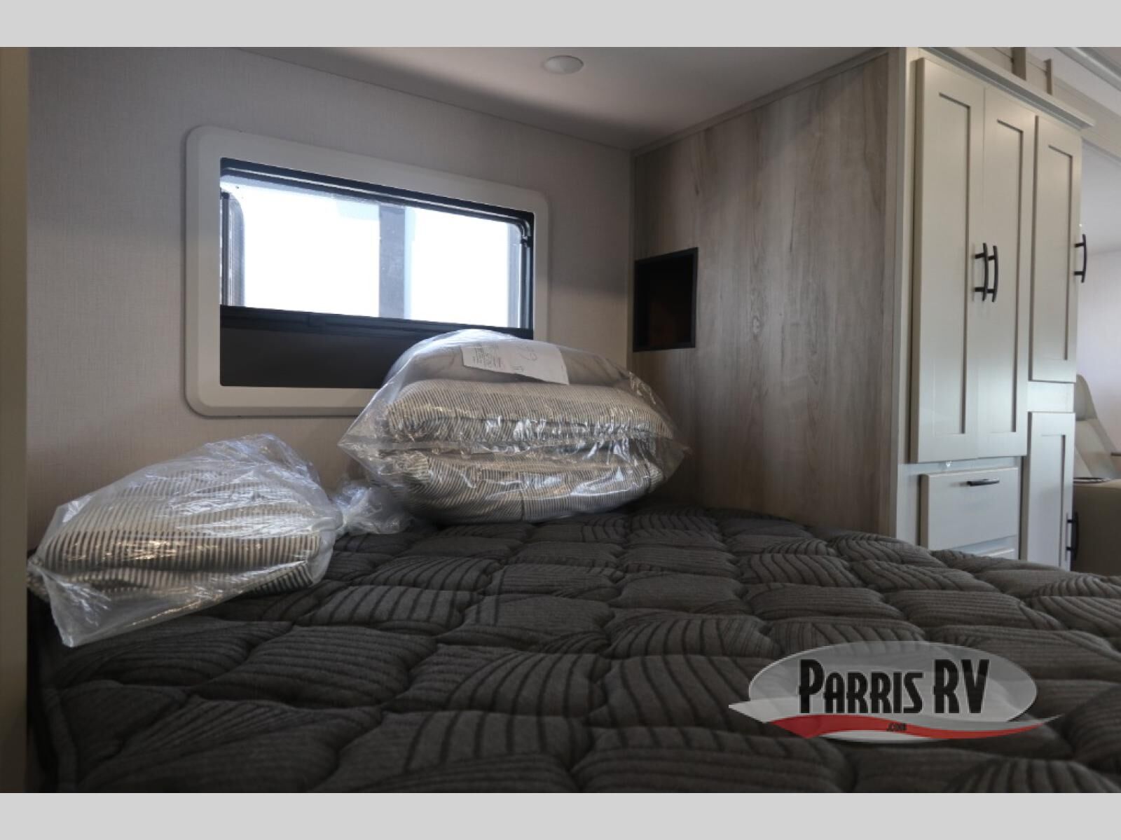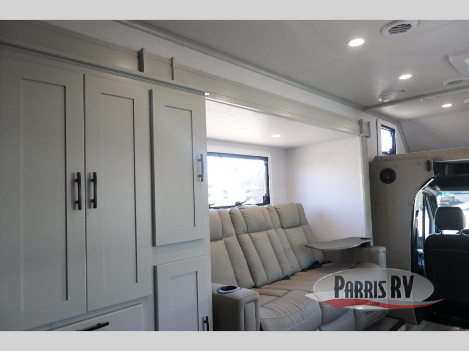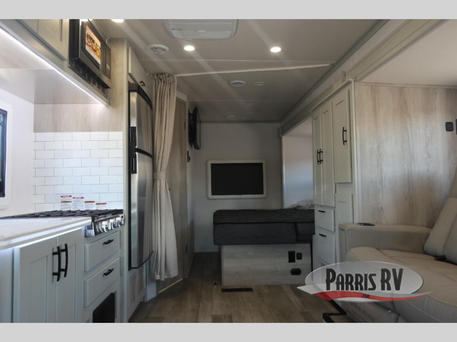 Take this motorhome on your greatest adventures yet! Start each morning feeling well rested after sleeping on the corner queen bed then head to the rear corner bathroom to freshen up in the shower with an Oxygenics body spa RV shower head and a skylight above for added headroom and natural lighting. Now that you're ready for the day, you can grab some eggs from the 8 cu. ft. two-door compressor-driven refrigerator and fry them up on the three burner cooktop, then enjoy them at the booth dinette. The kitchen also has a countertop extension for more meal prepping space and a convection microwave. This unit also includes a living room 32" LED Smart TV and a 32" LED smart TV across from the bed. You could even switch things up by replacing the booth dinette with an optional 3-seat power recliner, and adding a cab over bunk option!