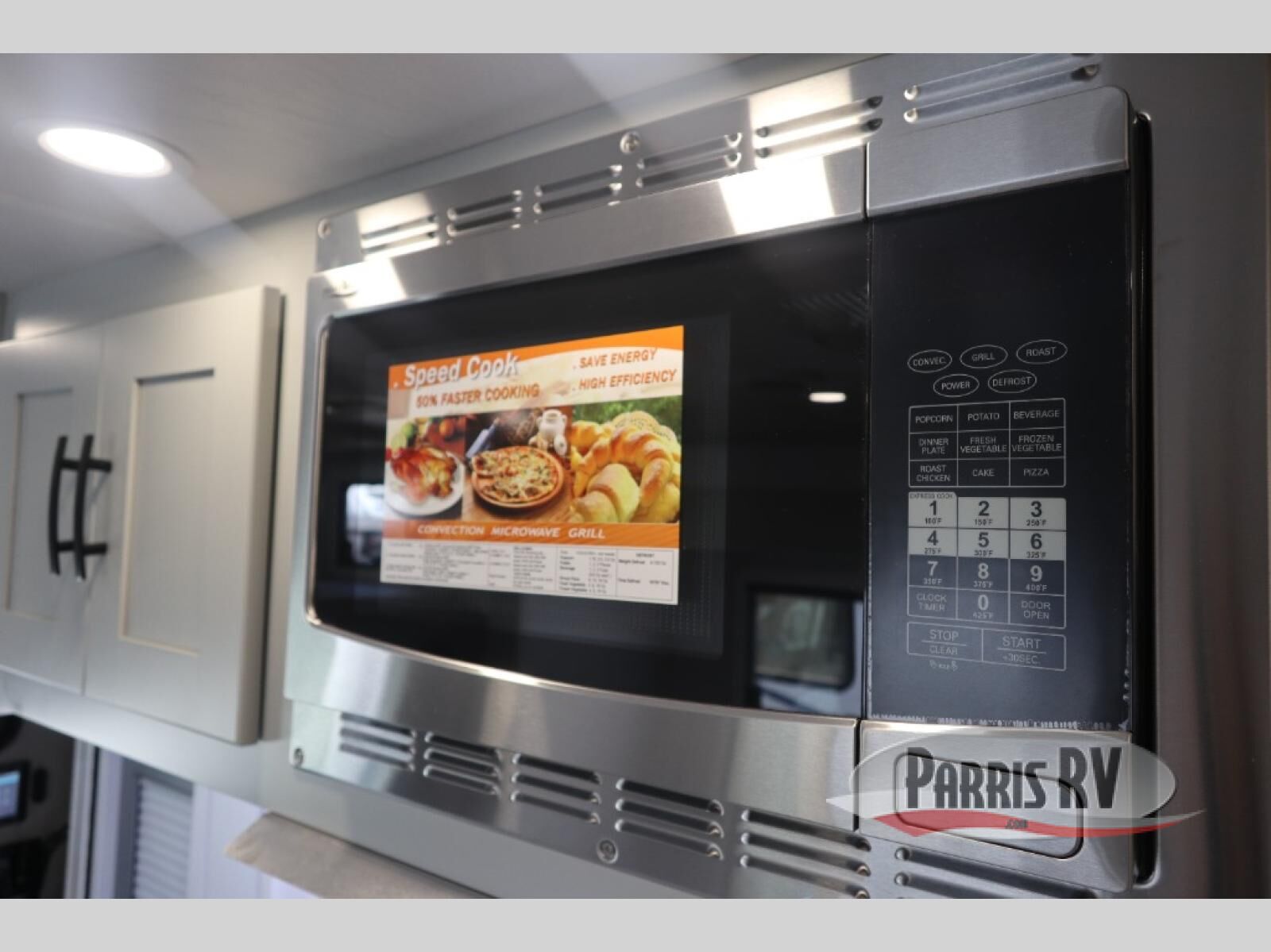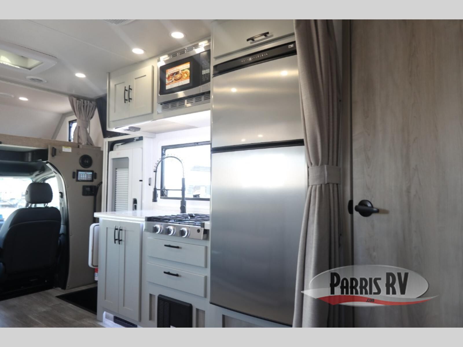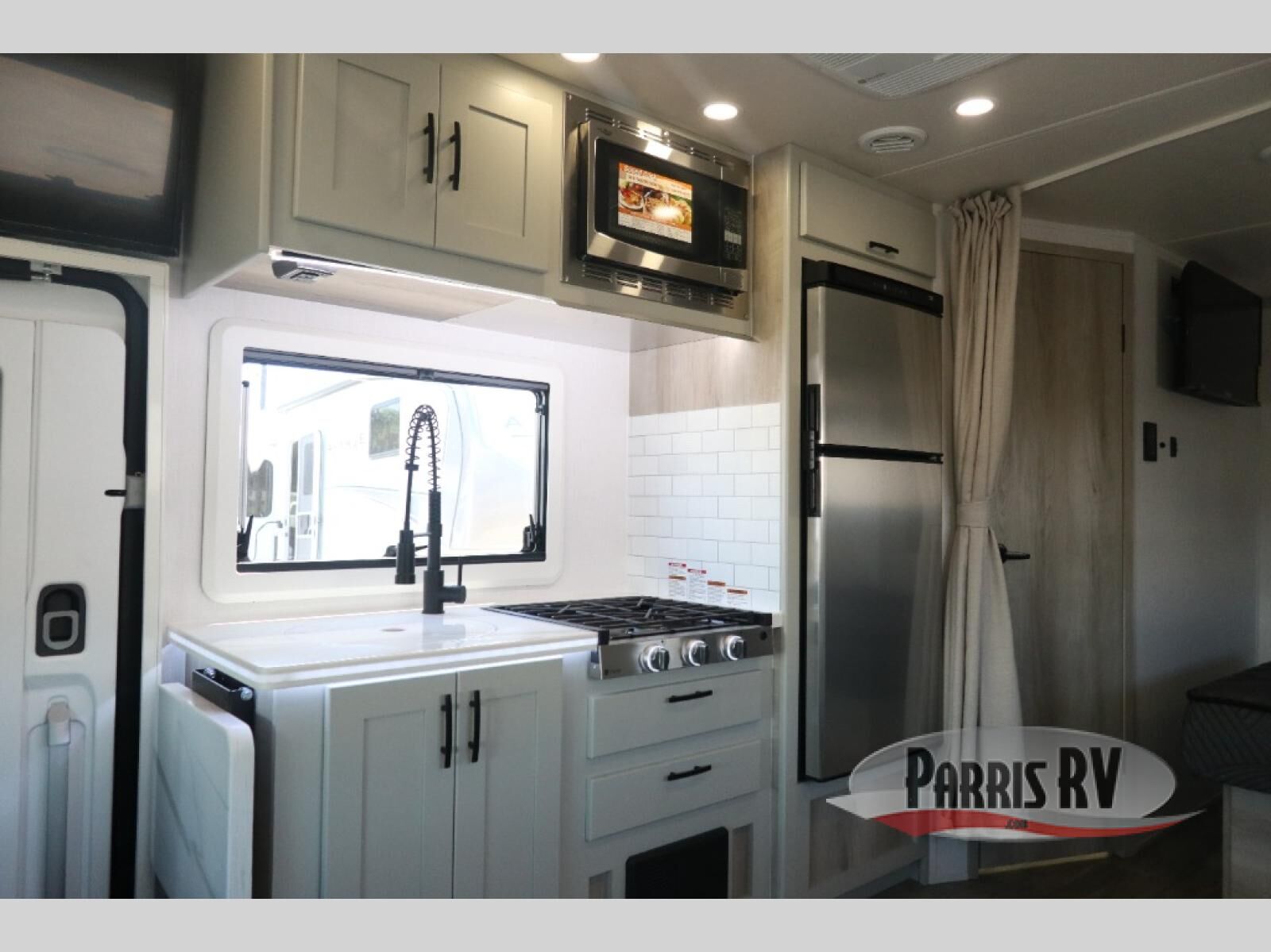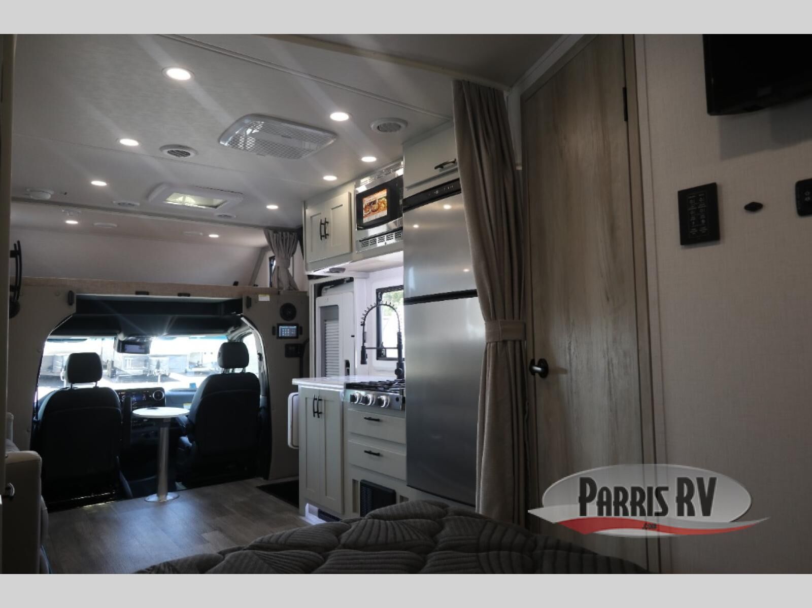 Take this motorhome on your greatest adventures yet! Start each morning feeling well rested after sleeping on the corner queen bed then head to the rear corner bathroom to freshen up in the shower with an Oxygenics body spa RV shower head and a skylight above for added headroom and natural lighting. Now that you're ready for the day, you can grab some eggs from the 8 cu. ft. two-door compressor-driven refrigerator and fry them up on the three burner cooktop, then enjoy them at the booth dinette. The kitchen also has a countertop extension for more meal prepping space and a convection microwave. This unit also includes a living room 32" LED Smart TV and a 32" LED smart TV across from the bed. You could even switch things up by replacing the booth dinette with an optional 3-seat power recliner, and adding a cab over bunk option!