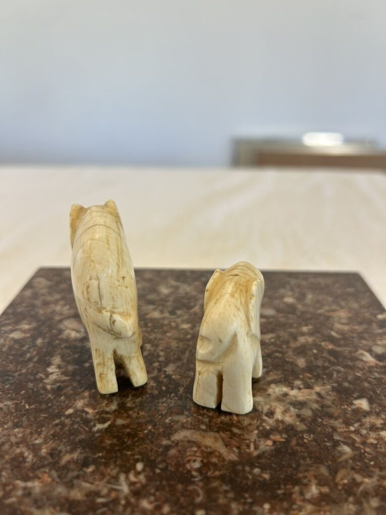 Material (Likely): Based on the visual appearance and common materials used for such carvings, they could be made from bone, a form of natural material, or potentially a synthetic substitute like resin designed to mimic these materials. While their appearance might suggest ivory, distinguishing genuine ivory from bone or other materials requires closer inspection for specific characteristics like Schreger lines or grain patterns.