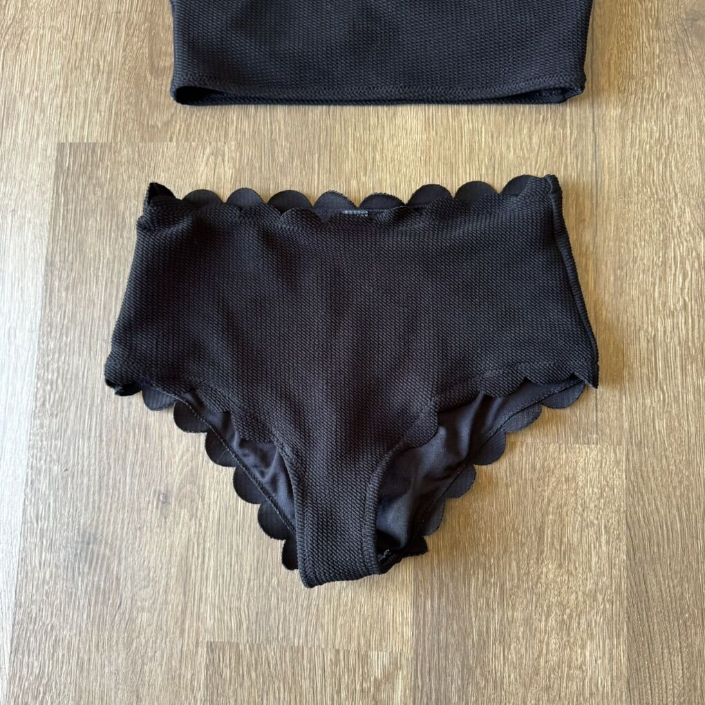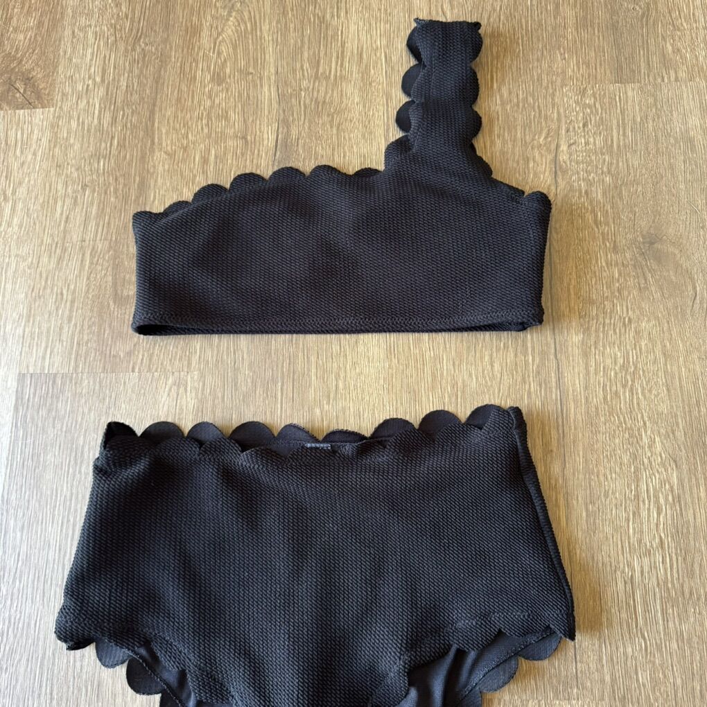 Women’s Scalloped Edge Black One Shoulder Bikini S