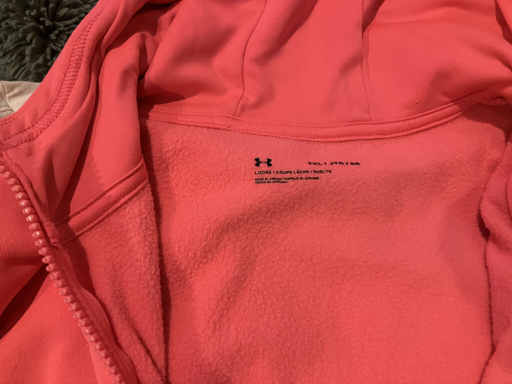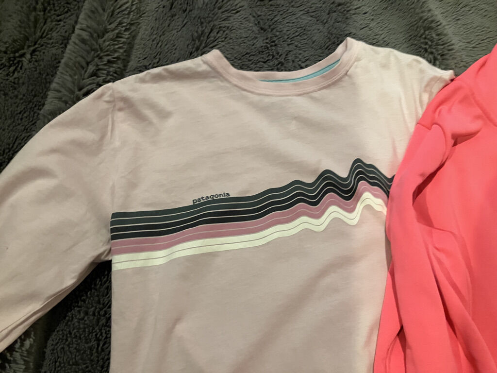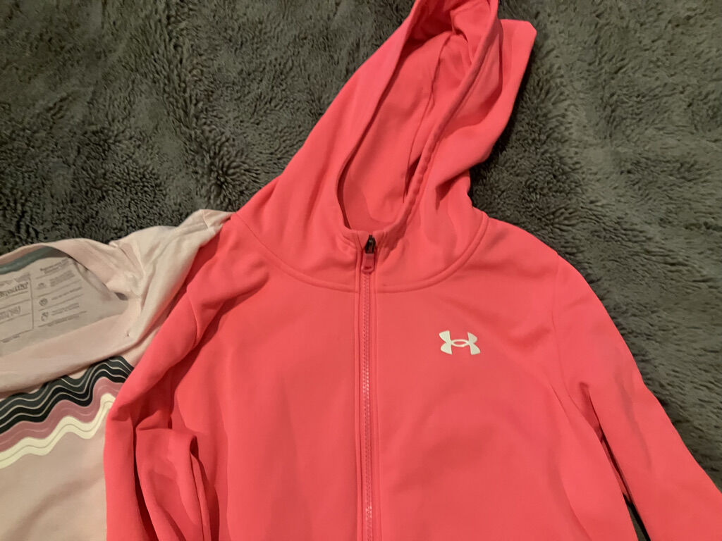 XL (size 14) Girls pink Patagonia shirt and bright pink Under Armour light jacket. Each worn once and ready for a new home. One small tuck in seam at neck on shirt. Price for both items ($5) or $2.50 for each item.
