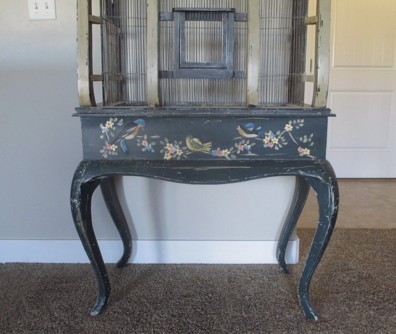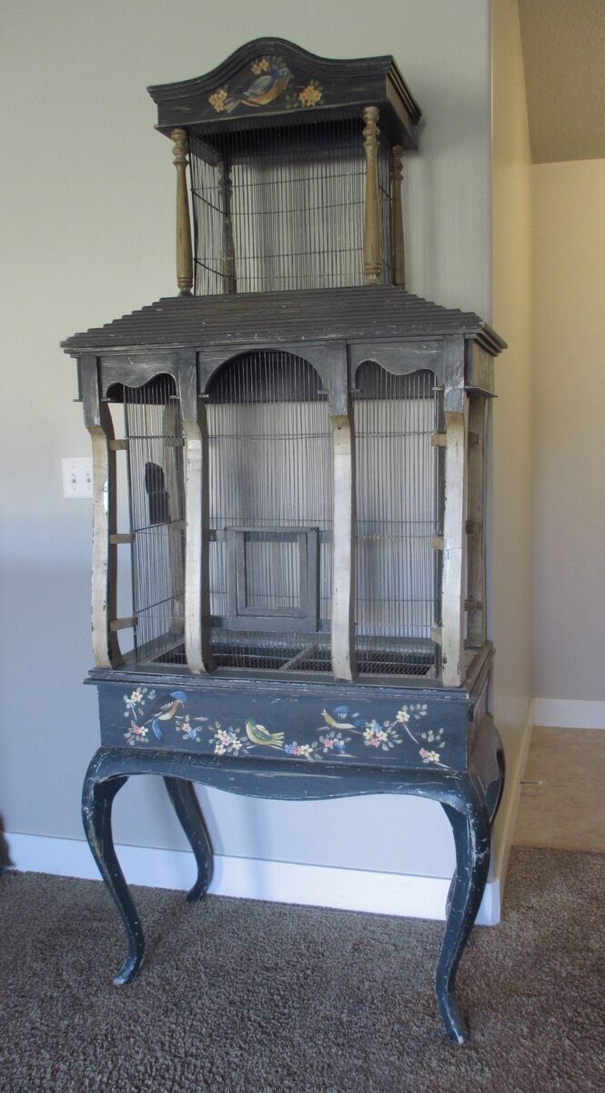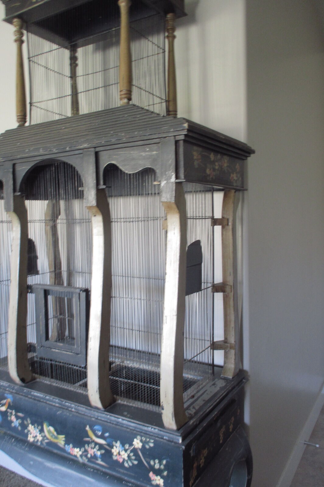 VenmoQuality sturdy wood construction, 3 very large tiers, base, middle, & top piece. Original deep green with colorful hand painted birds gracing all sides. Adds charm & character to home, & makes a beautiful mansion for pet birds. Wood front door, seed & water slide up compartments, bottom pull out tray for easy access cleaning. Beautiful clean vintage condition, not perfect or new, shows natural wear & aging as expected for a vintage bird cage, nothing broken or missing, exact age & origin unknown, But believed to be approx 40 yrs old, possibly from Argentina. **Much more colorful than in photos, pics dont really do justice to this unique bird cage