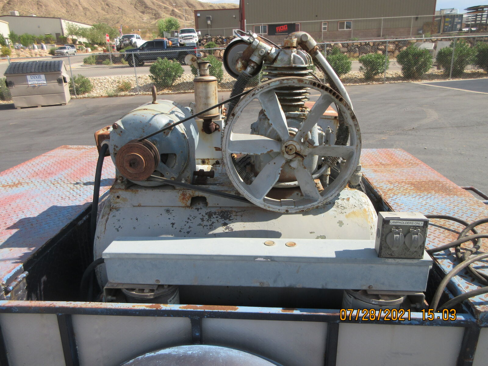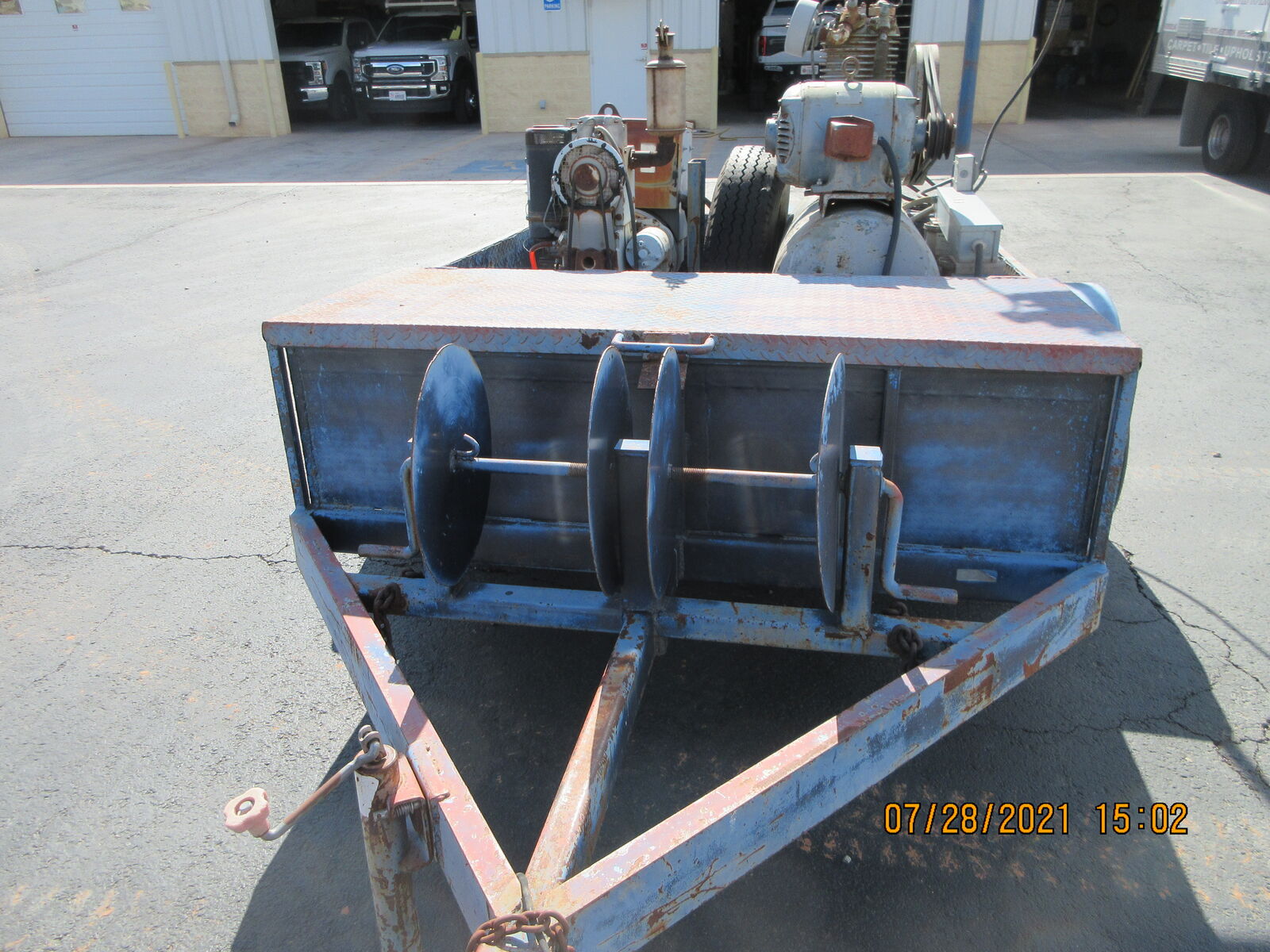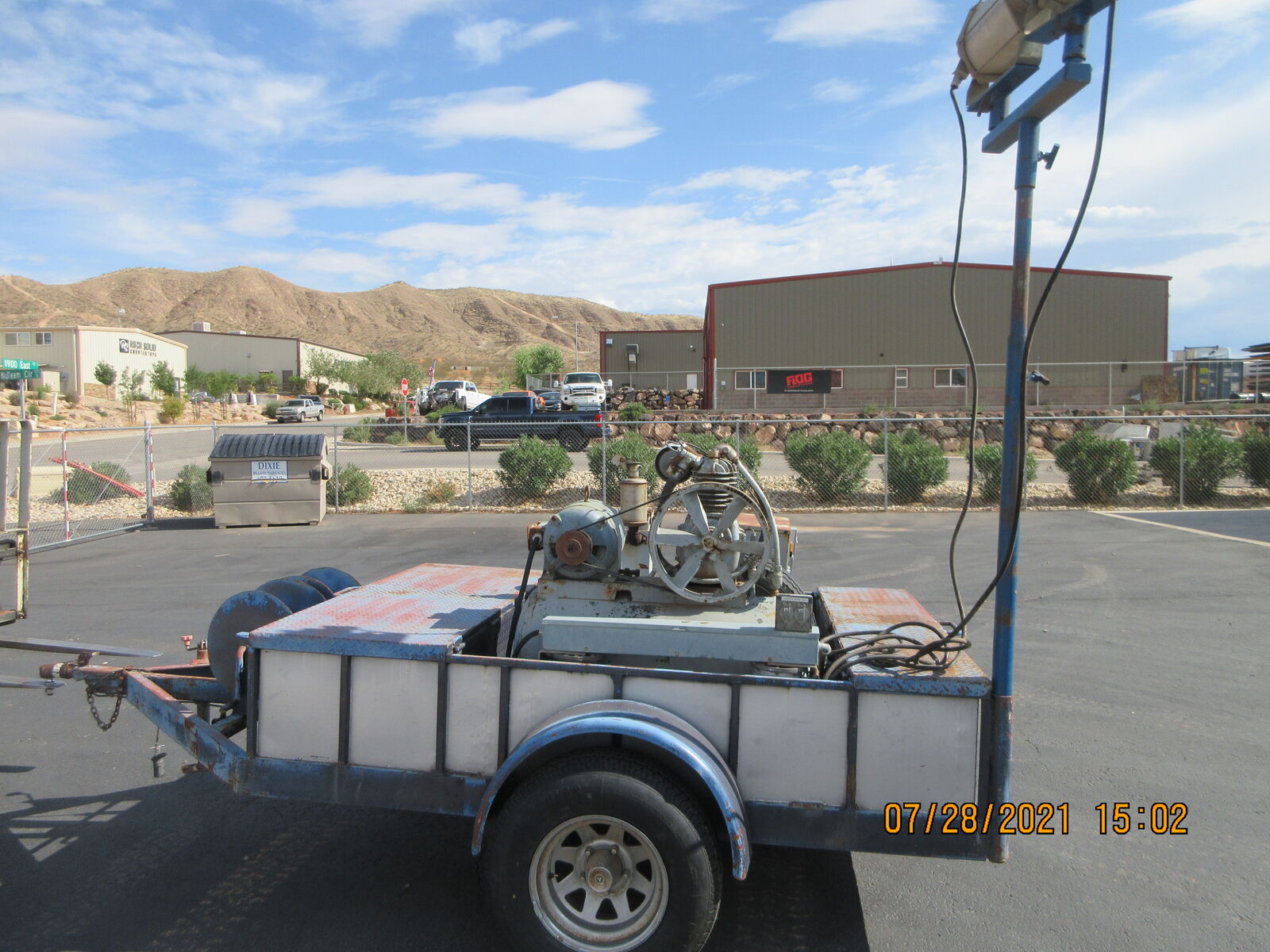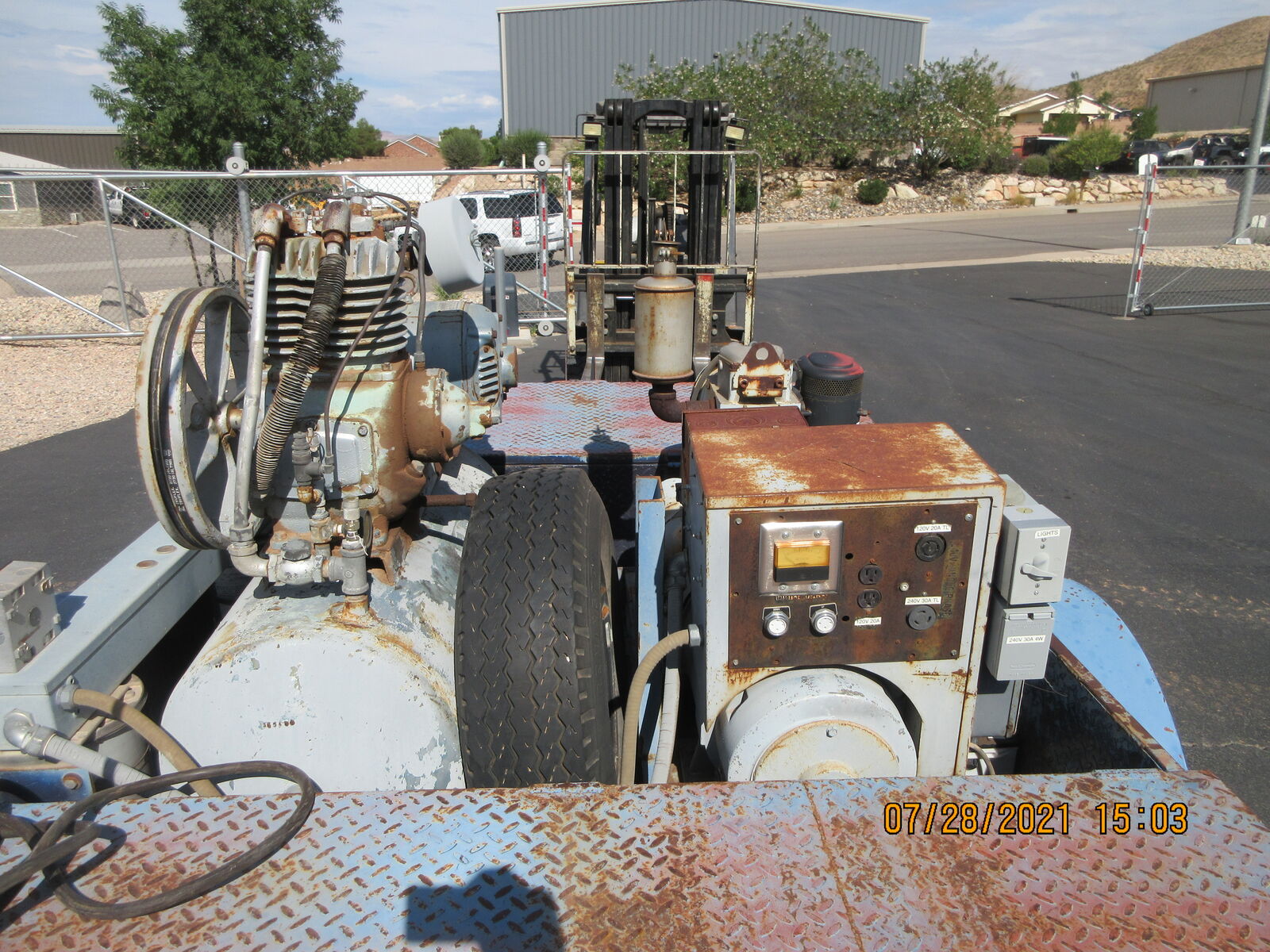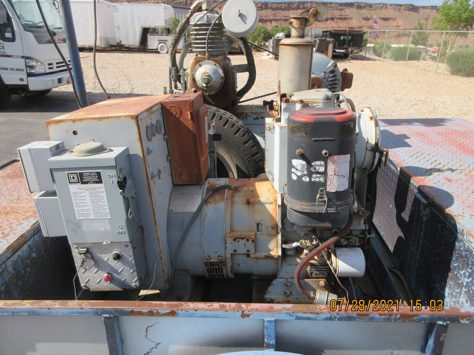 Custom made Generator, Air compressor , Light plant. This trailer was built for a framing trailer. It has a big locking box and hose reals on the front. There is a Hatz diesel generator that runs both the air compressor and the light plant.