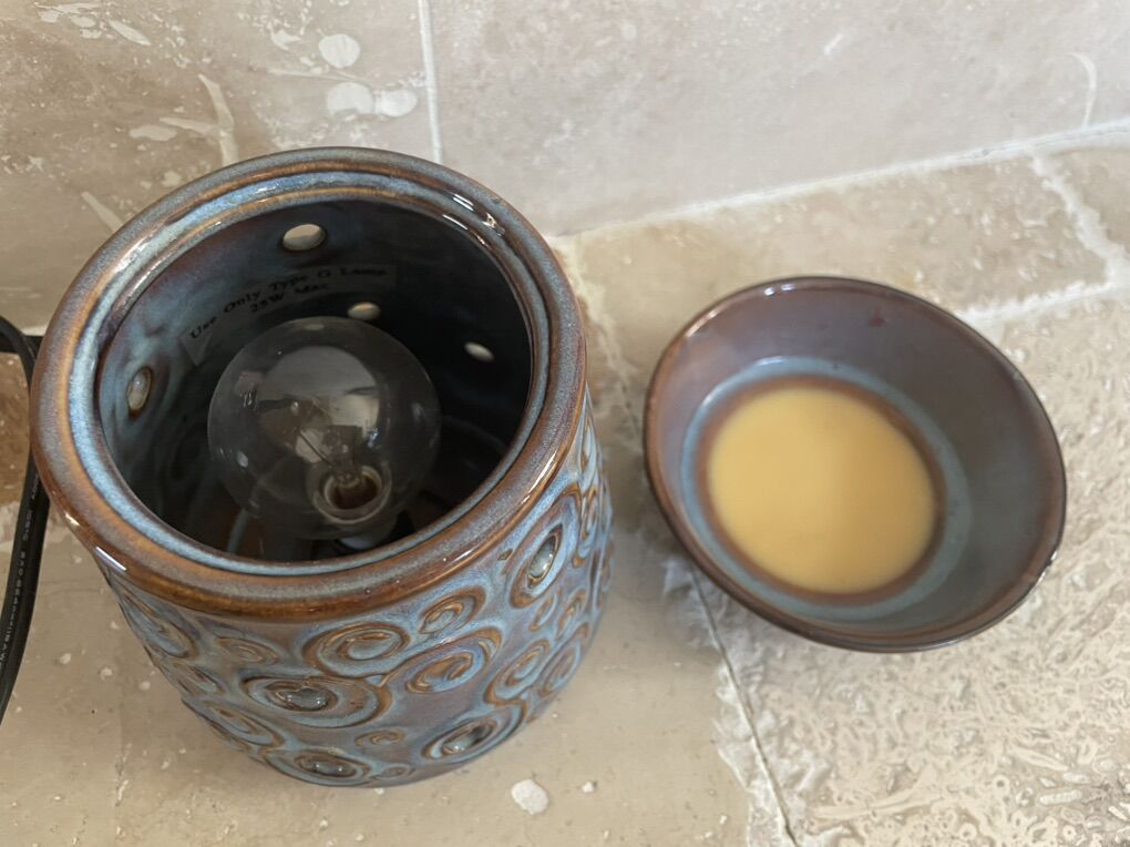 I have a pretty Lisbon Swirl Scentsy warmer. It is blue with a brownish color. It is almost 6 1/2 inches tall and plugs in. See my other ads for jewelry, artwork, home decor and more.