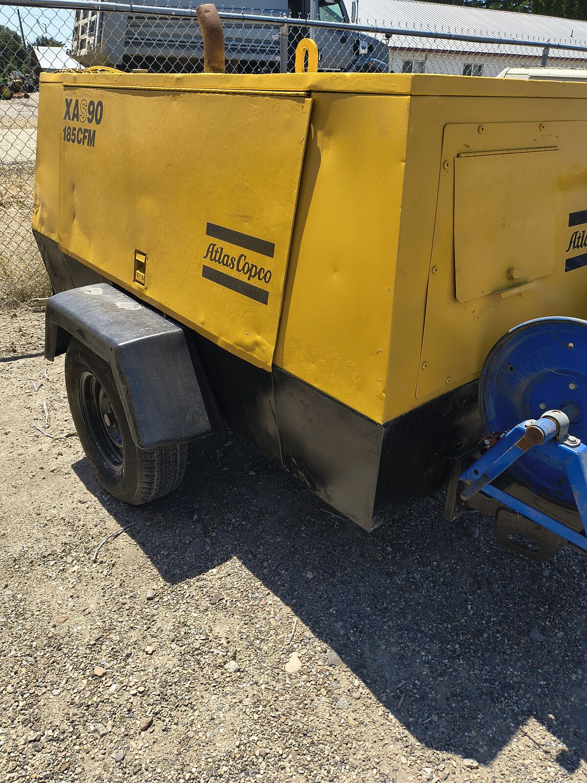 Up for sale is a 1998 Atlas Copco XAS90JD Towable Air Compressor. Free Air Delivery: 185 CFM (≈5.2 m³/min) at standard pressure (58–116 PSI depending on model)