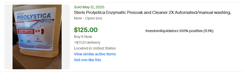 Unsued/new. Expiration 10/2026. This sells for $125 with $70 shipping on ebay. See all pictures. This is a good deal. Designed for use in hospital washer/disenfector and automated mechanical washers for processing appropriate medical devices including surgical instruments.