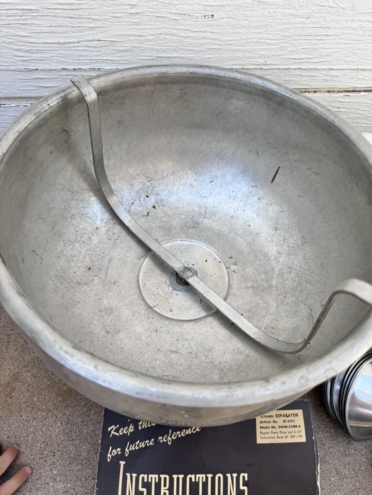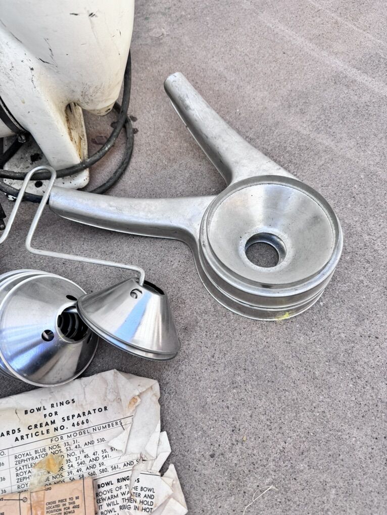 Antique cream separator. I have never used it, so am unsure if it is still in good working order. Heavy duty machine.
