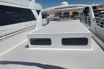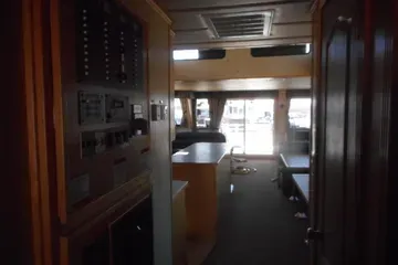 The interior has 4 staterooms with queen beds and another stateroom with 4 bunks. Two bathrooms and lots of living area are another great feature to this custom built boat.