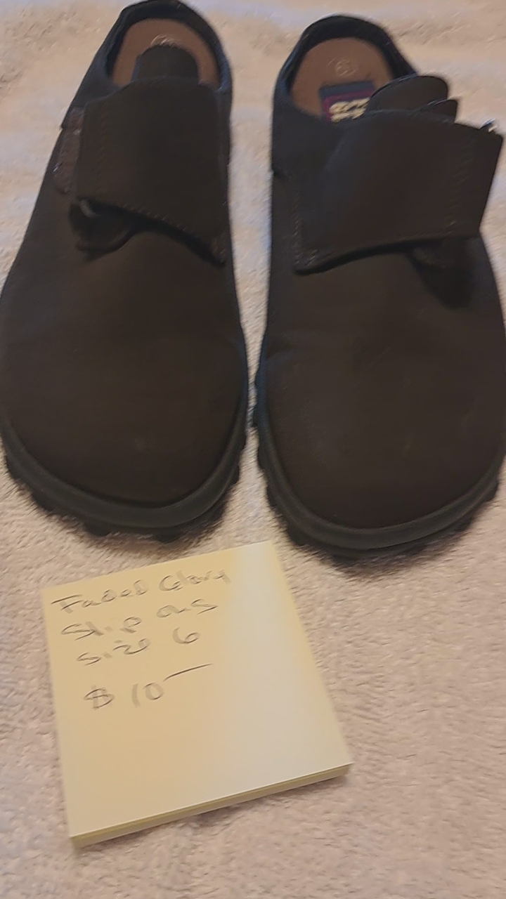 PayPalUp for sale is a pair of Faded Glory Slip Ons Size 6. Ended up being to small for me. My loss is your gain. Like new $10
