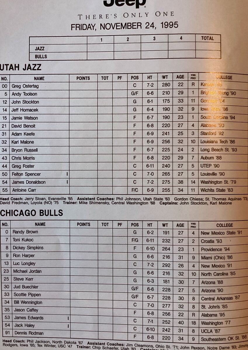 Chicago sports pages featuring MJ and the Bulls and the game program of Bulls vs Jazz.