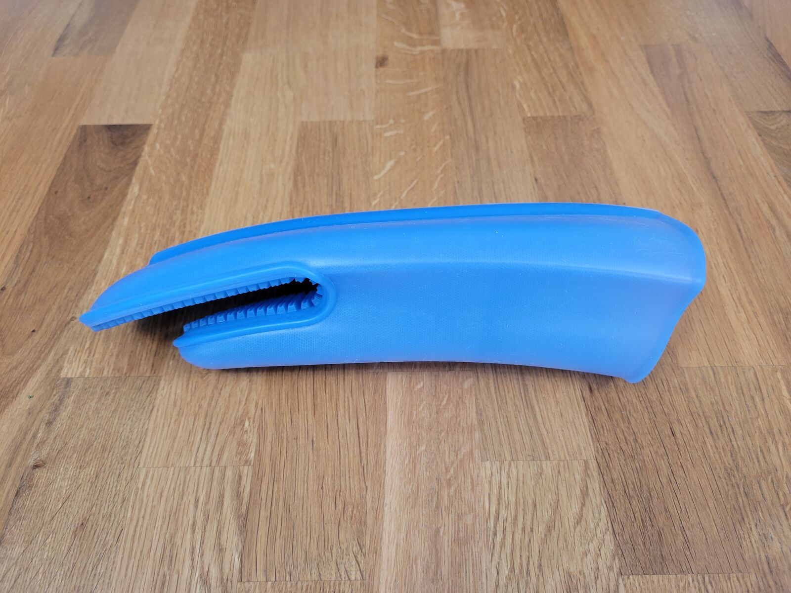 VenmoNon-slip grip, blue silicone, 11.5" BBQ Mitt. Dishwasher safe and waterproof.