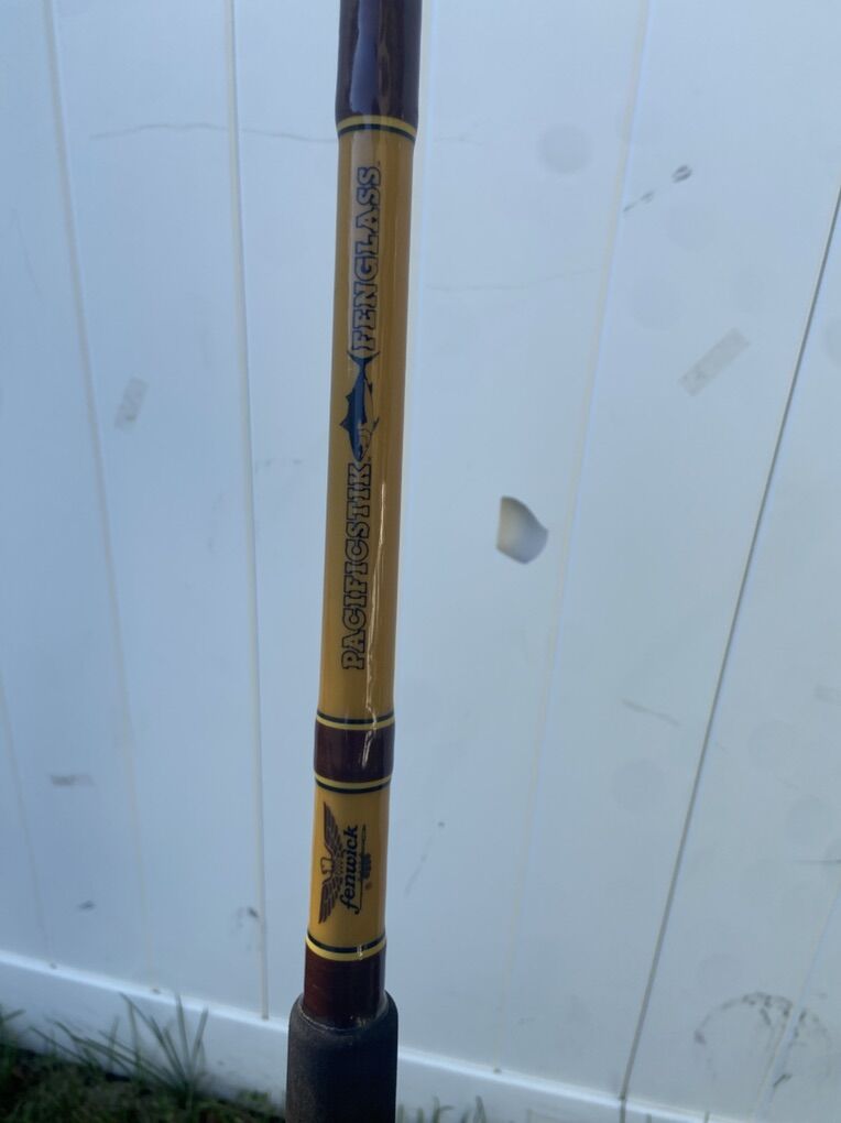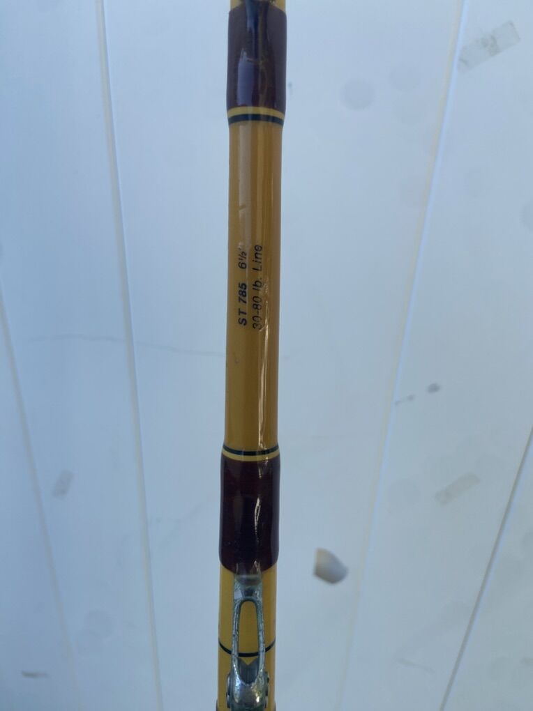 Rod: Fenwick Pacificstik Fenglass ST 785 • Length: 6’6” • Line rating: 30–80 lb • Solid fiberglass construction • Aluminum reel seat • Heavy-duty roller guides (check photos for full guide condition) • Model ST 785 – a highly respected workhorse for offshore big game
