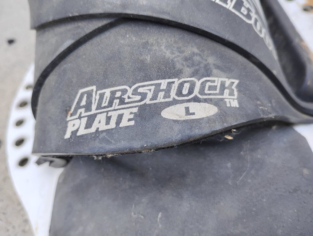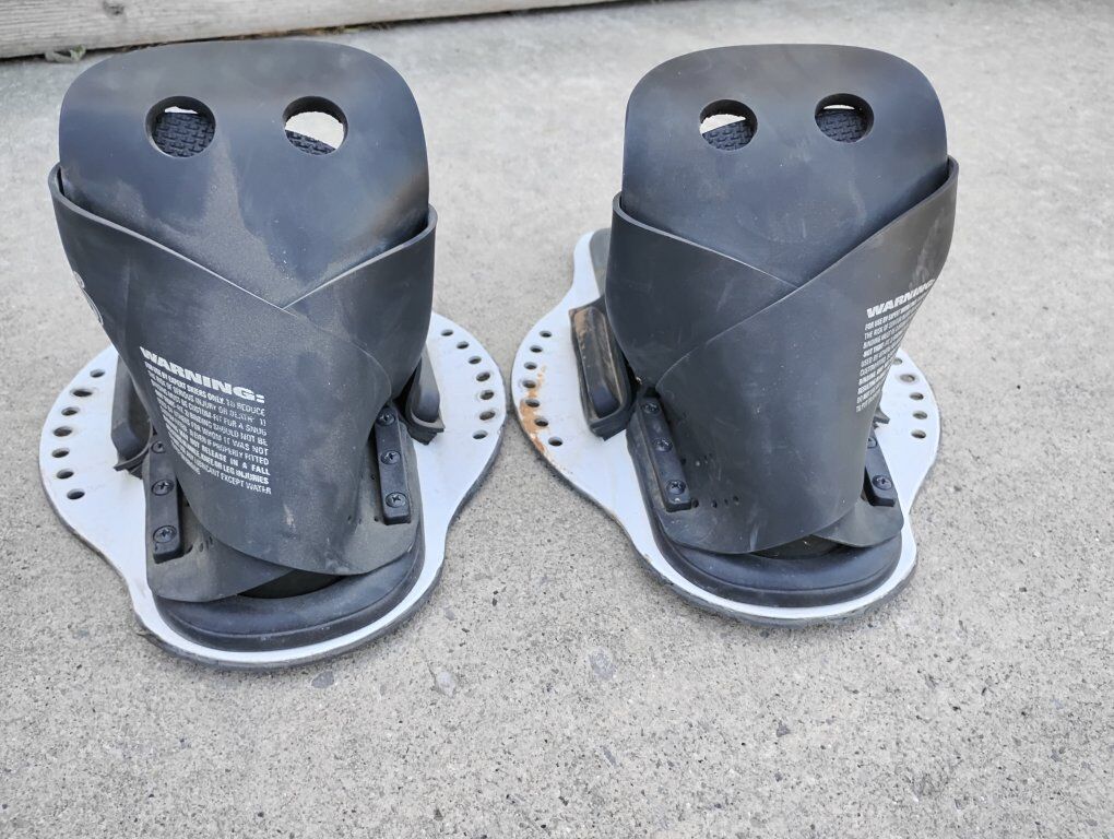 Venmo(Price reduced on 12/9) Up for sale are wakeboard binding rubber shoes, with metal latches, hyper lite power boots, air shock plate. Measuring 11" x 4.5" and 8.5" tall, more measurements in pictures.