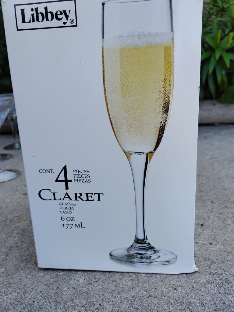 These glass flutes are in great condition and Libby Clarets are brand new.