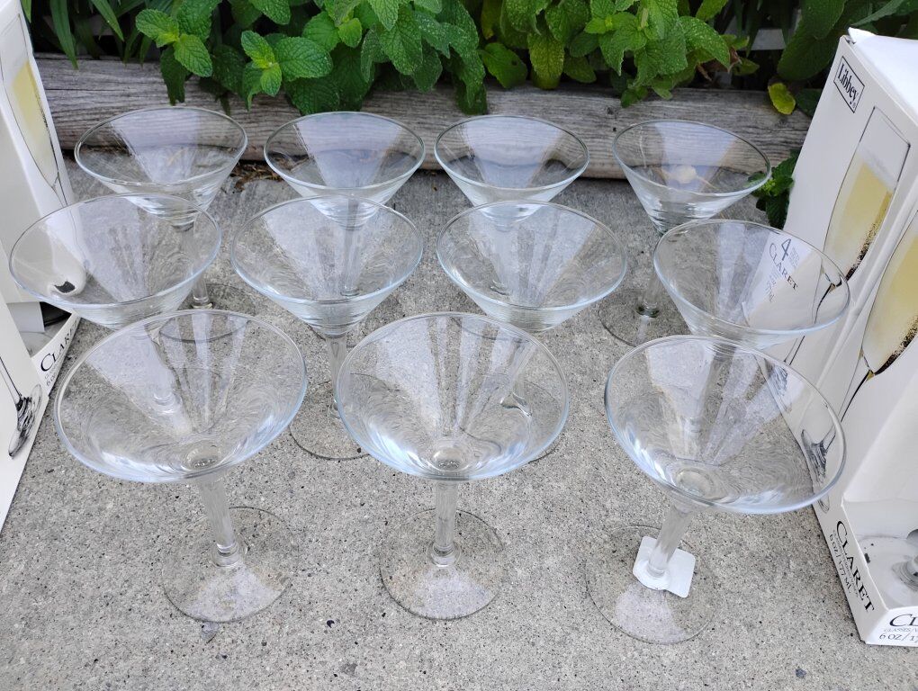 Venmo(Price reduced to as low as possible, or make a fair offer if you are interested.) Up for sale are 4 boxes of brand new Libby Clarets champagne wine flutes, and 11 used but clean Martini glasses. Measuring 2.5" x 8.5" for libby clarets, 3" x 5.75" and 4" diameter for martini glasses.