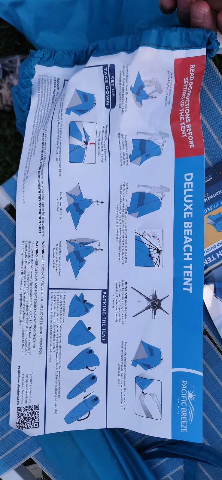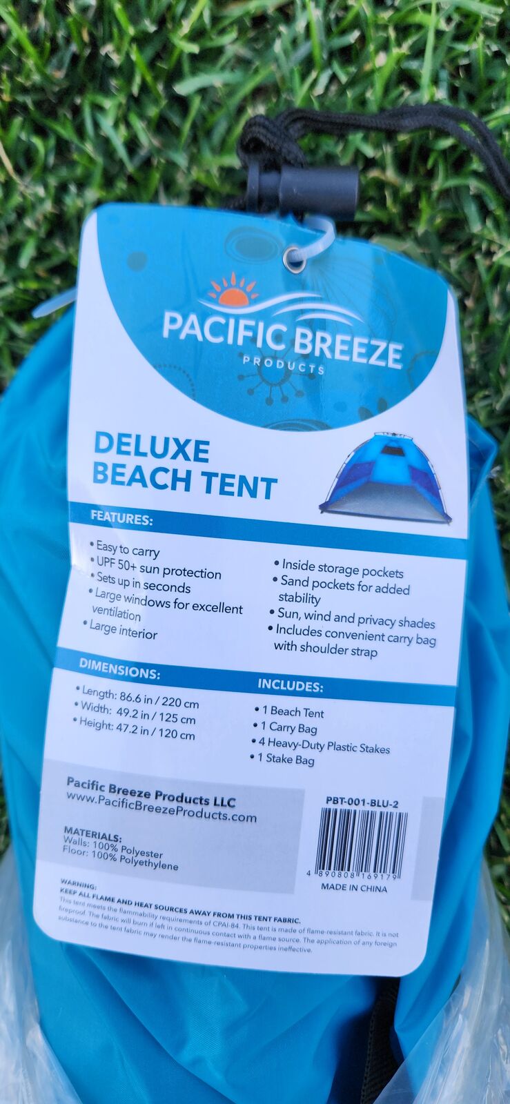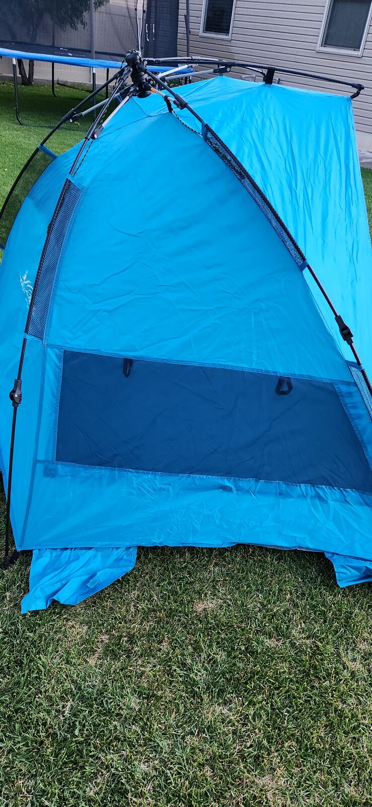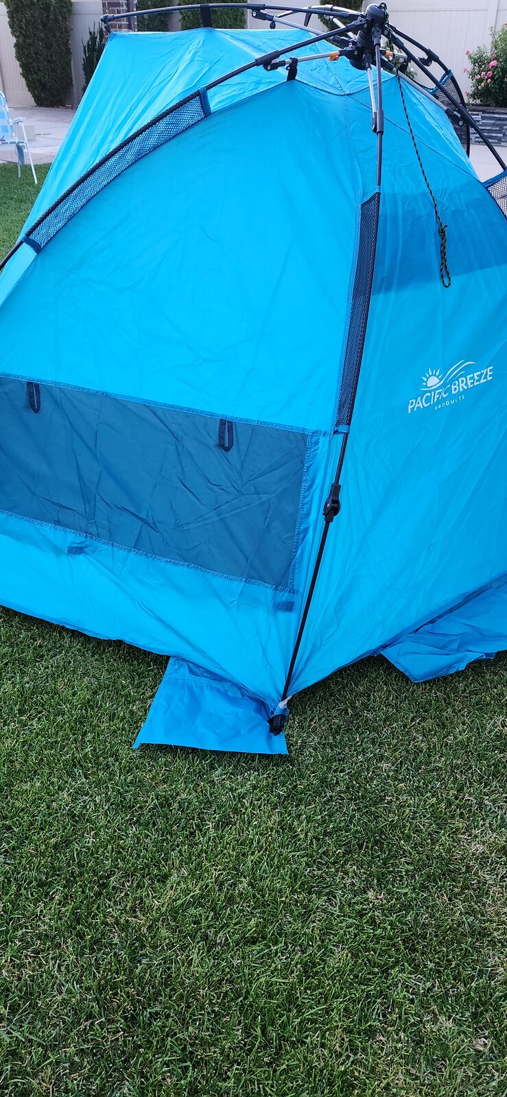 Pacific Breeze Easy Setup Beach Tent, SPF 50+ Pop Up Beach Tent Provides shelter from The Sun. It takes seconds to assemble. New with box and carry on bag.