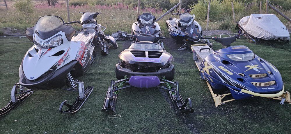 I've got 3 iq chassis, 1 arctic cat mtn cat 800, 1 edge x chassis and a skidoo rev chassis. they all have some motor parts but no complete motors. the cat has a bottom and good cylinders. make offers on the parts you need the worst I can say is no or come back with a counter offer. calls work best one-208-220-5458