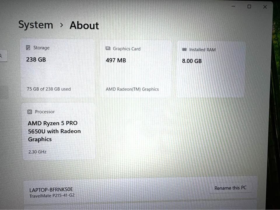 ApplePayAcer TravelMate P215-41-G2 256GB SSD 8GB RAM WINDOWS 11