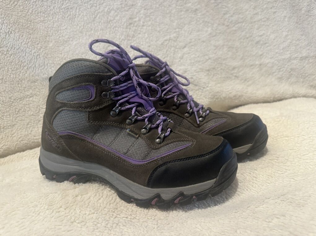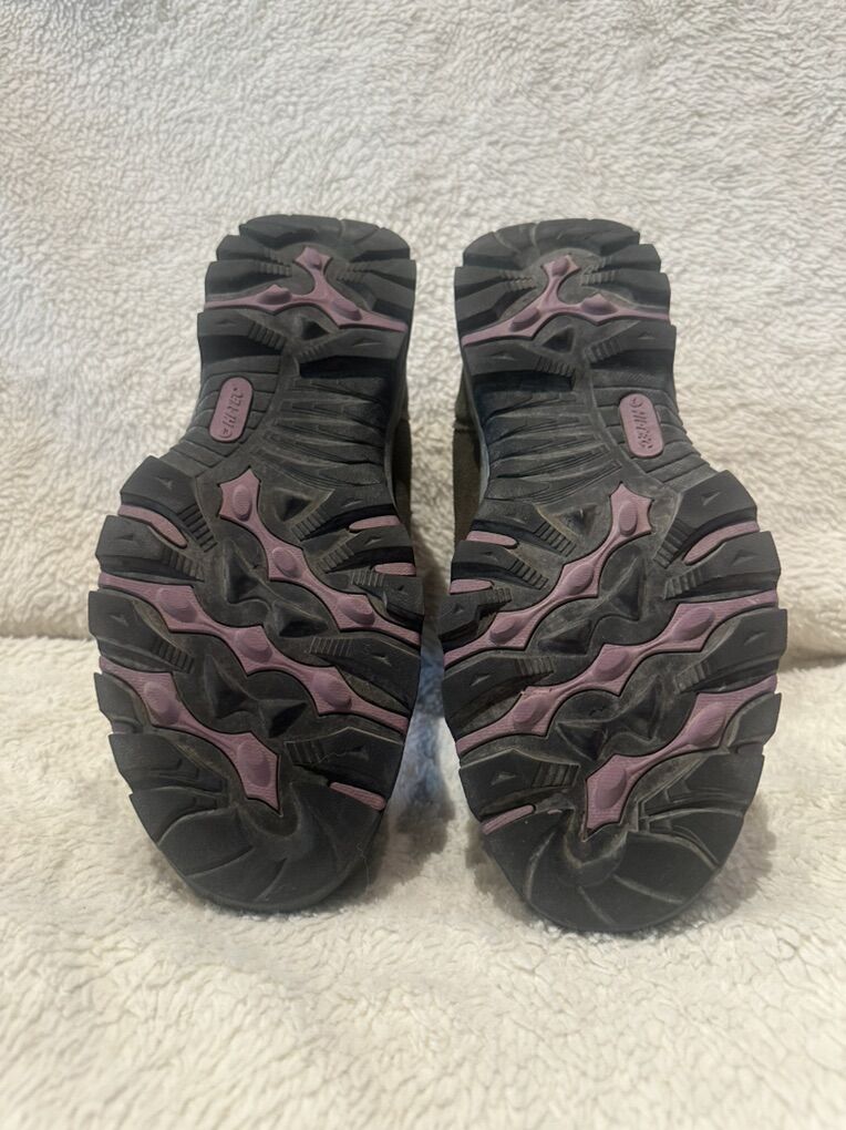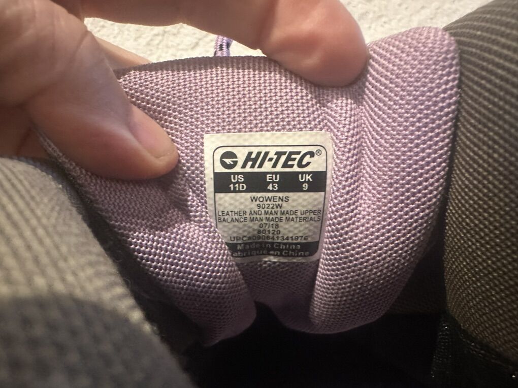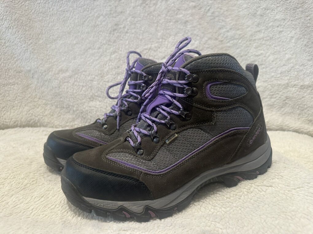 Hi-Tec women’s size 11D grey, leather and textile with purple trim mid hiking Boots in barely used condition. See photos for details. I take cash or Venmo, but cash is preferred. Text is best. 801-201-4446. Check out my other ads for additional sizes and styles.