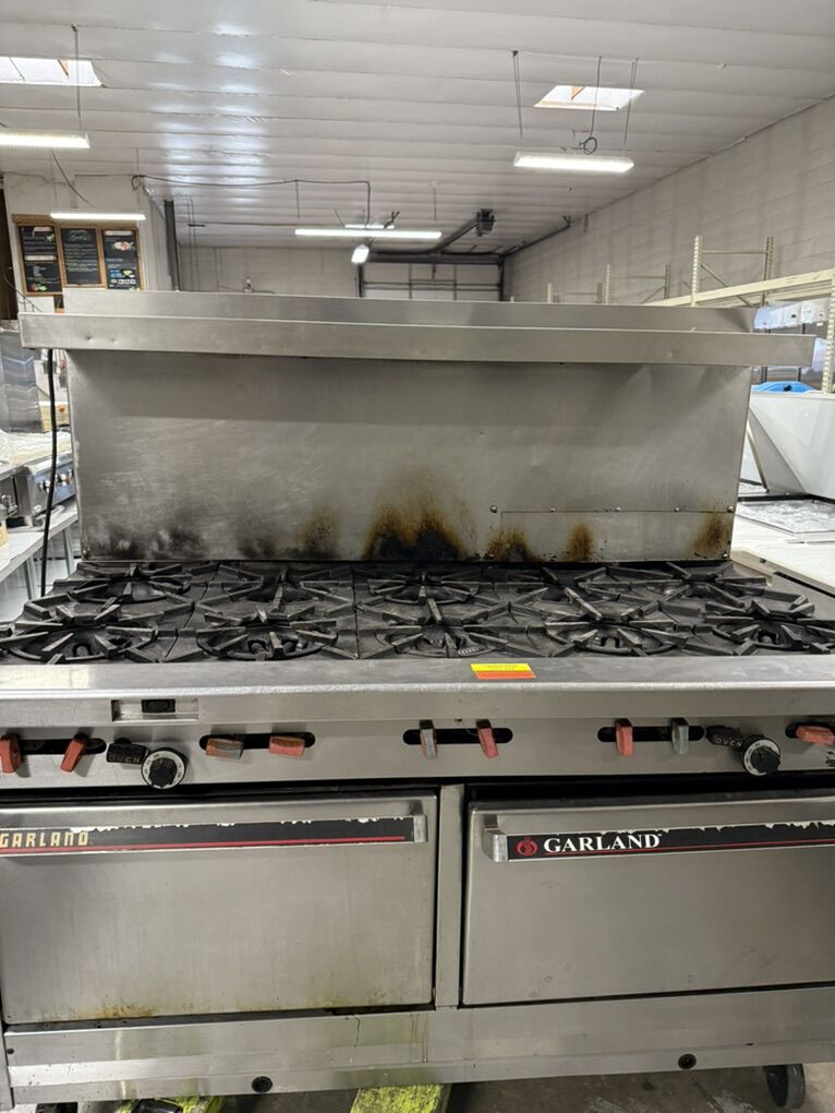 Used 10 burner gas range , all the top burner works In great condition , but ovens need to fixed only $500