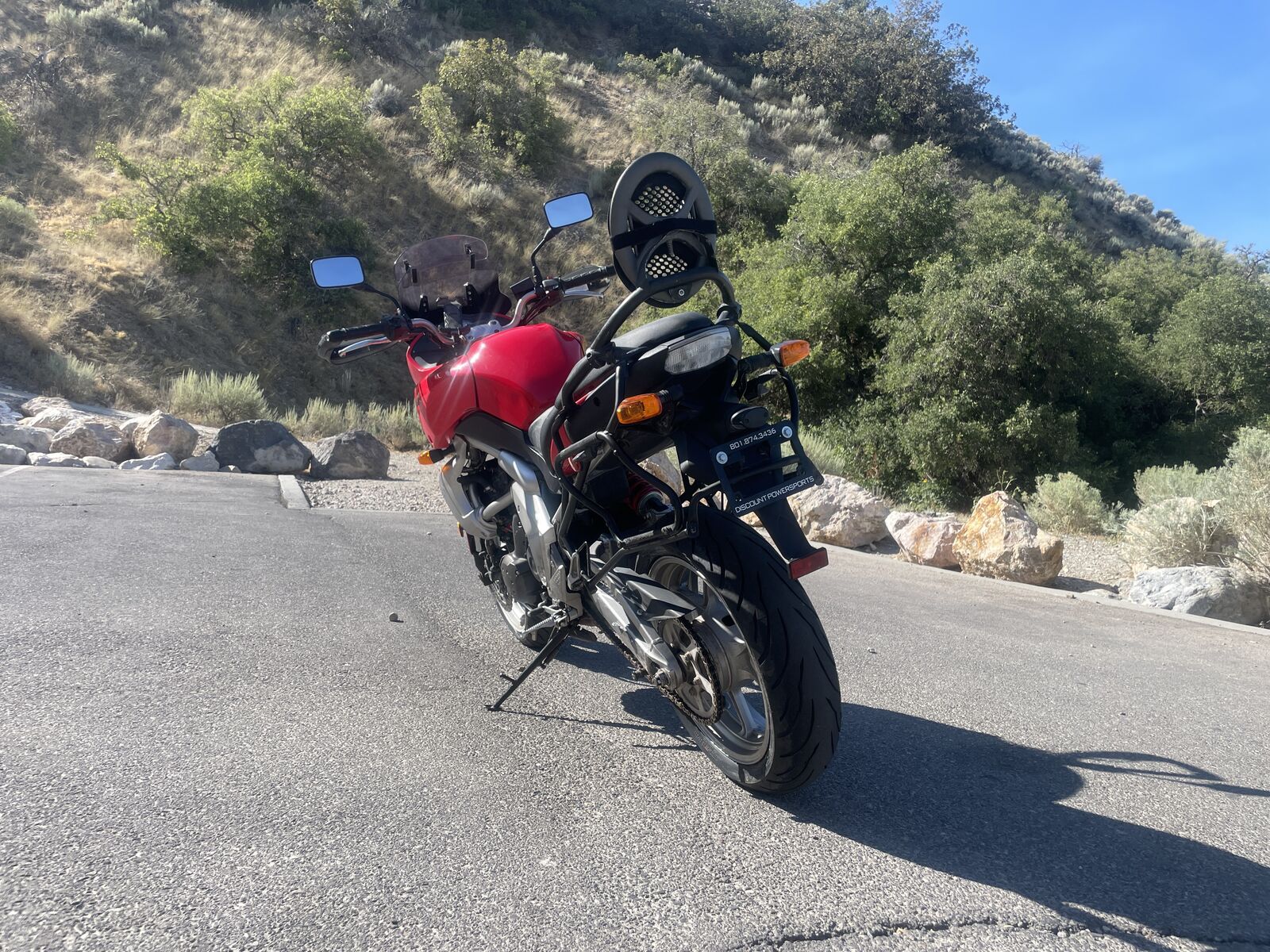 She comes with a passenger backrest and saddlebag mounts making it easy to add extra storage and allows your passenger to have a more comfy ride. The Versys is one of my personal favorite bikes and you won't find a more fun ride out there. She's perfect for both off-roading or street riding. Has a rebuilt title due to cosmetic damage, but it's been professionally repaired and inspected, and she's good as new! Only 31k miles.