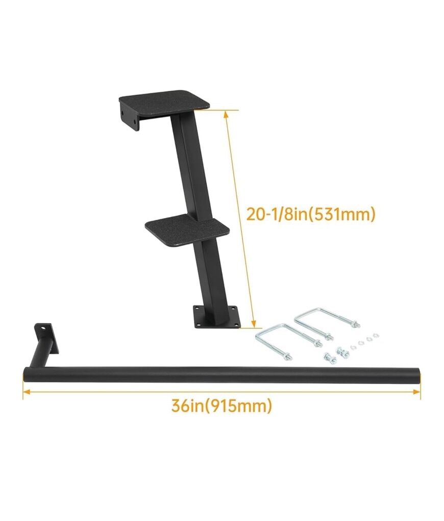 Compatibility: The trailer step is designed to compatible with a wide range of vehicles. Whether you have a truck, boat, or even a compact car, our step will easily adapt to your vehicle's needs. Durable Steel Construction: Made from steel material, ensuring long-lasting durability and exceptional strength. It can withstand heavy loads and withstand the test of time, providing a reliable and stable platform for stepping onto your trailer. Powder Coated Surface: The trailer step features a powder-coated surface treatment, which not only enhances its resistance to rust but also adds a sleek look. The smooth finish not only protects the step from environmental elements but also makes it easy to clean and maintain. Package List: 1 x Trailer Step. There are mounting accessories, but no mounting instructions. Installation: The screw mounting design ensures a secure and stable installation, allowing you to easily attach the step to your trailer without any hassle. Allow at least 4 inches of flat space on top of the trailer tongue to install the trailer step. In some cases, you may need a hitch extension to use hatch on the SUV.