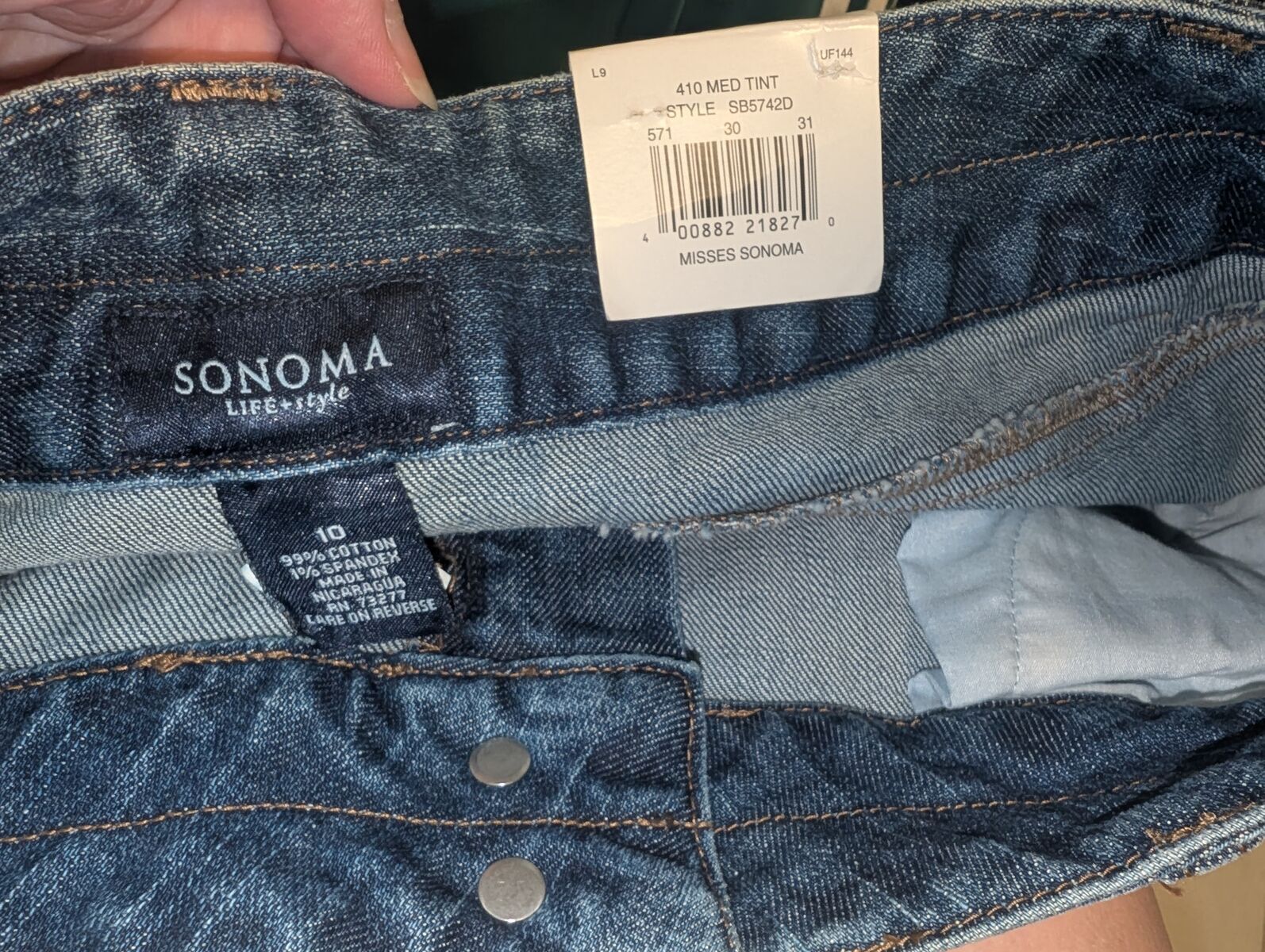 These are brand new with tags. $30 value. Quality denim long shorts. Size Womens 10. Waist laying flat across: 17", making it a 34" waist. Inseam legs 16" .