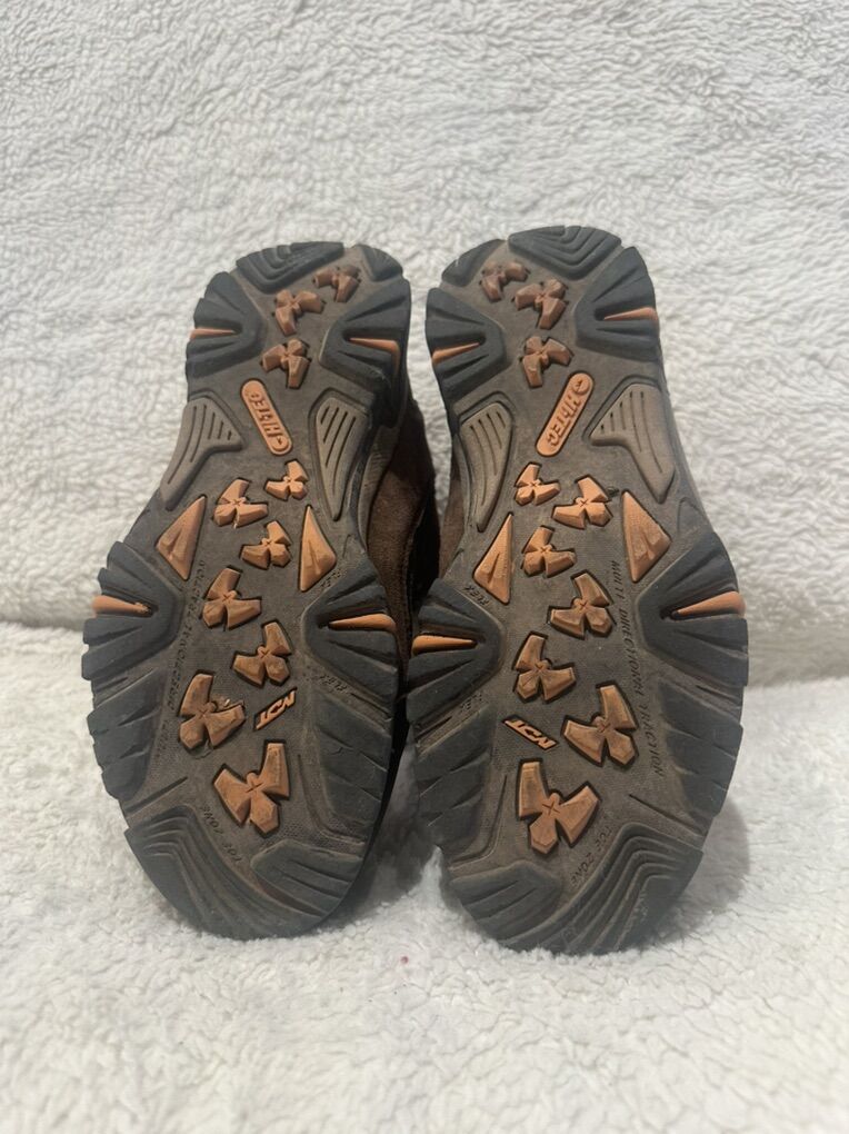 Hi-Tec youth size 6 brown with orange trim, leather and textile waterproof mid hiking boots and lightly used condition. See photos for details. I take cash or Venmo, but cash is preferred. Text is best. 8012014446. Check out my other ads for additional sizes and styles.