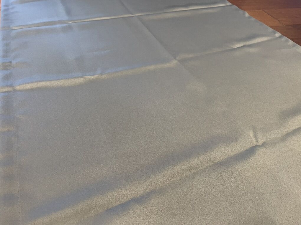 I have 4 gray curtain panels that have never been used. They are 100% polyester and have a little shimmer. They are from Mainstays and are machine washable. Each panel is 30 inches wide and 84 inches long. They have rod pockets for hanging. The backs are a really dark gray, almost black. The price is for all 4 of them together. See my other ads for jewelry, artwork, home decor and more.