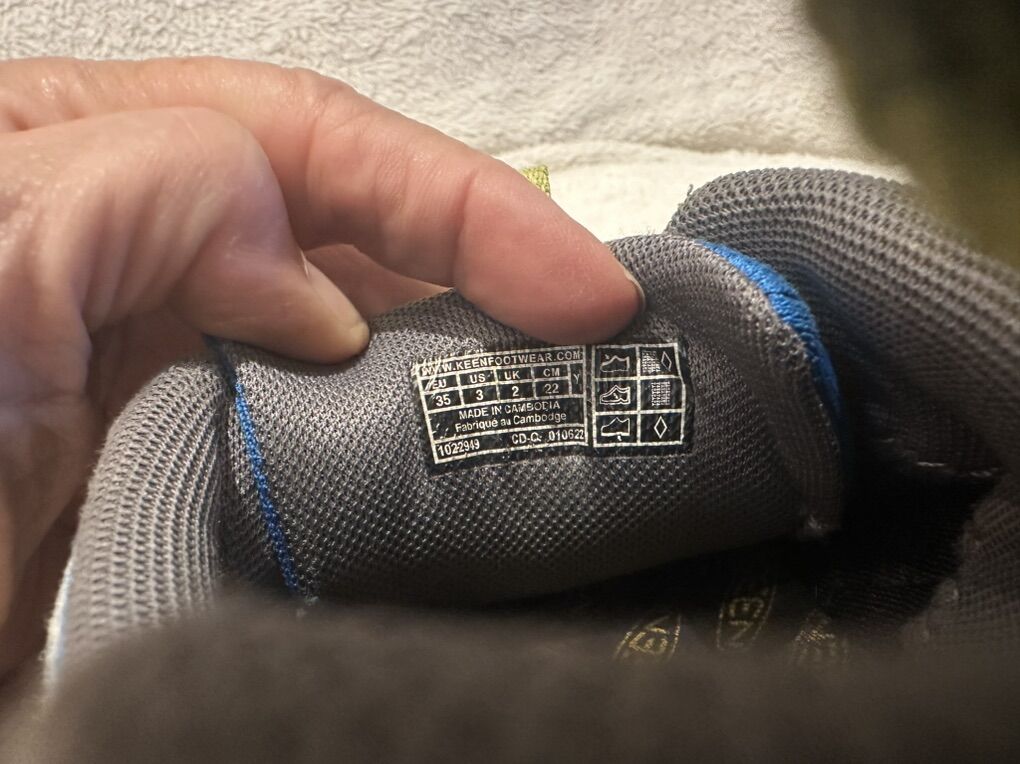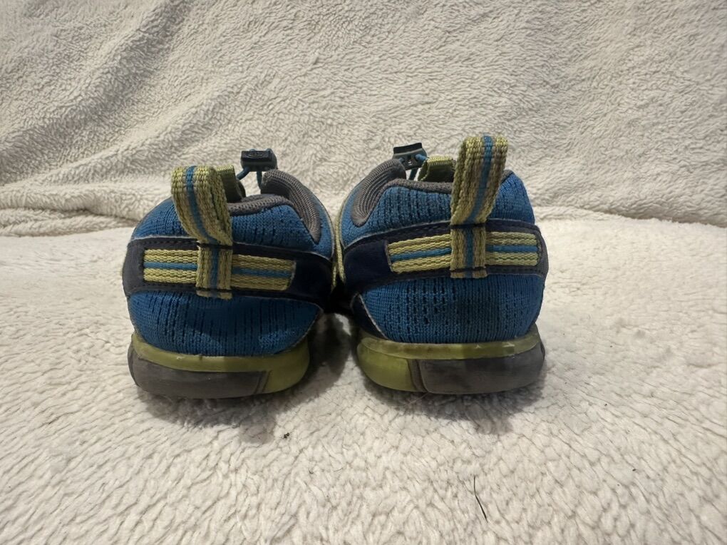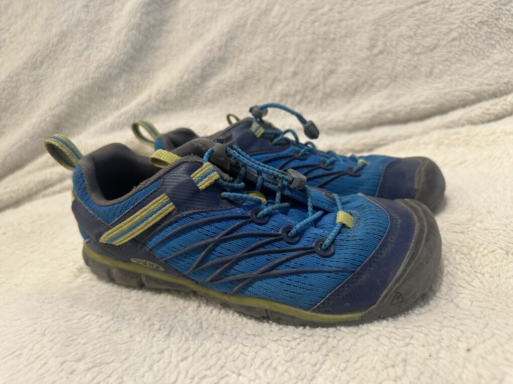 Keen youth size 3 bright blue with navy trim, mesh, hiking shoes with elastic laces and a toggle at the top. These are in good condition, photos for details. I take cash or Venmo, but cash is preferred. Text is best. 801-201-4446. Check out my other ads for additional sizes and styles.