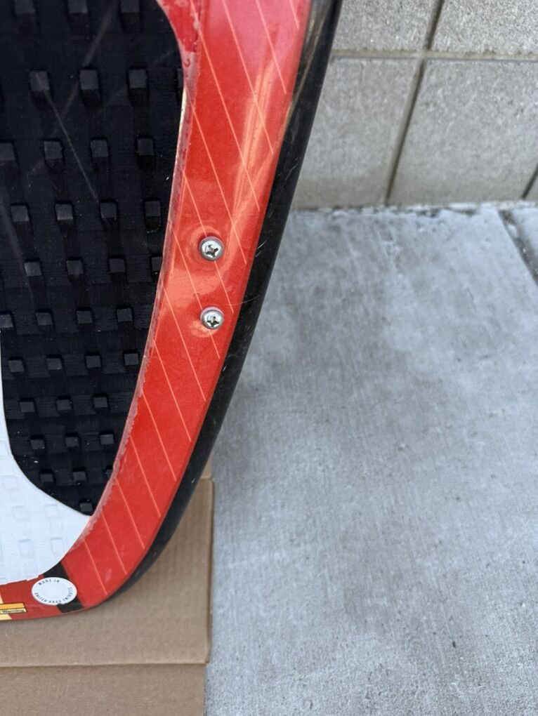 VenmoUsed, but in good condition. It needs one fin, as seen in the photos. Also, a small portion of the foam pad needs to be glued down.