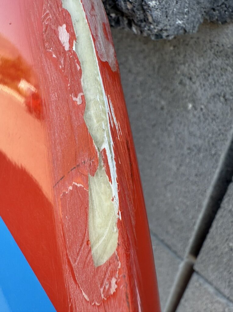 VenmoDamaged, but could be usable with a little TLC. It needs one fin, as seen in the photos. A repair has been performed on the front edge, and some other cracks exist.